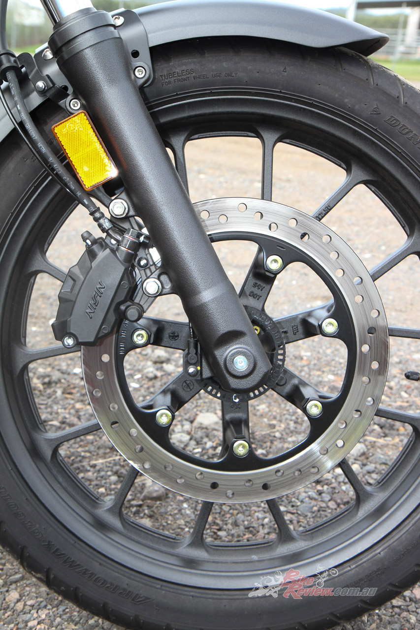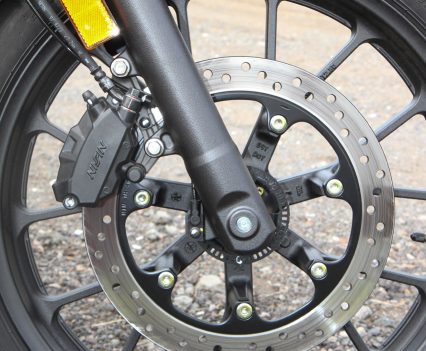 Brakes: Front 310mm rotor with twin piston floating Nissin caliper, rear 240mm rotor, single piston floating Nissin caliper, ABS both ends.