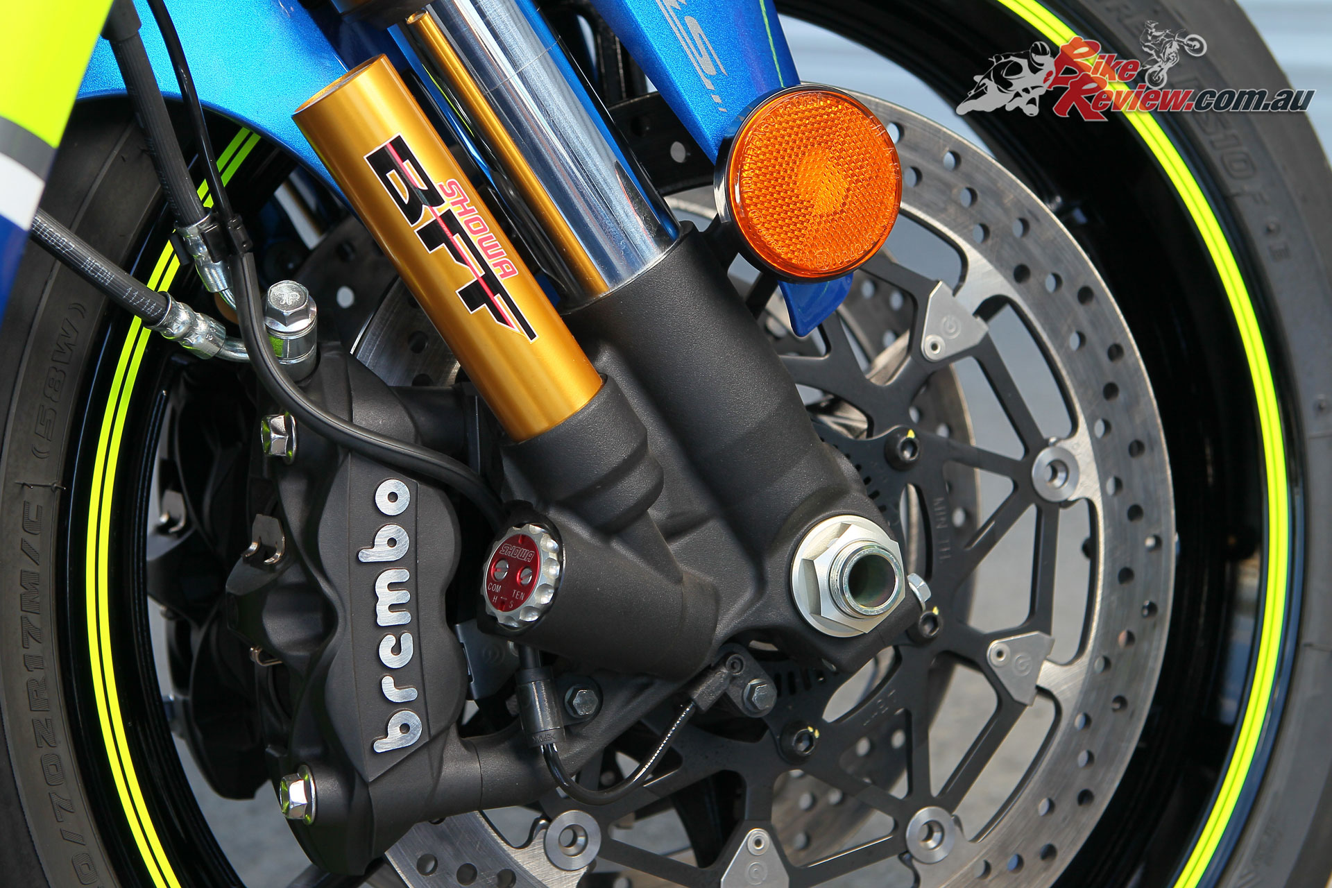 The brakes are new, with Brembo 320mm T-drive rotors replacing the outgoing Sunstar 310mm floating items. The T-Drive mounts have a larger surface area, enabling a reduction in carrier mounts from 12 to 10. 32mm Brembo radial-mount calipers are used along with a 19mm radial-pull master-cylinder. Wheels are new 6-spoke lightweight items and OEM tyres are Bridgestone RS10.