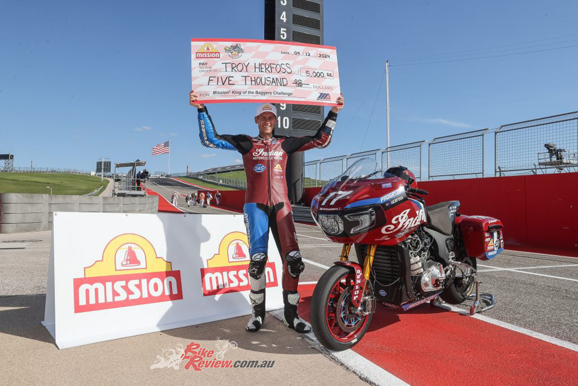 And doing all right, too – as in qualifying on pole for the season-opening Daytona double-header on March 8-9, Troy’s first ever race on this ultra-extreme motorcycle, and on his debut ride on the Florida Speedway’s steep 31° bankings, too. This guy’s a fast learner! Running at speeds topping 185mph Herfoss stunned the Yanks by earning a trio of runner-up finishes on his Indian Challenger. The first of these came in the Challenge race, a short sprint contest prior to the formal KOTB title events, in which he fended off countless attacks by his Harley-Davidson rivals headed by 2021 champion Kyle Wyman to follow his victorious Indian teammate and former 2022 champion Tyler O’Hara over the line.
