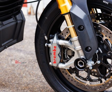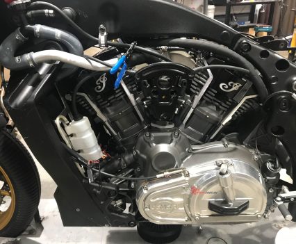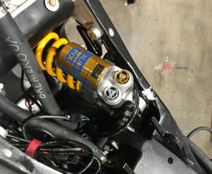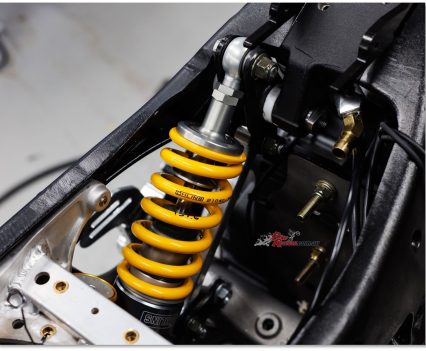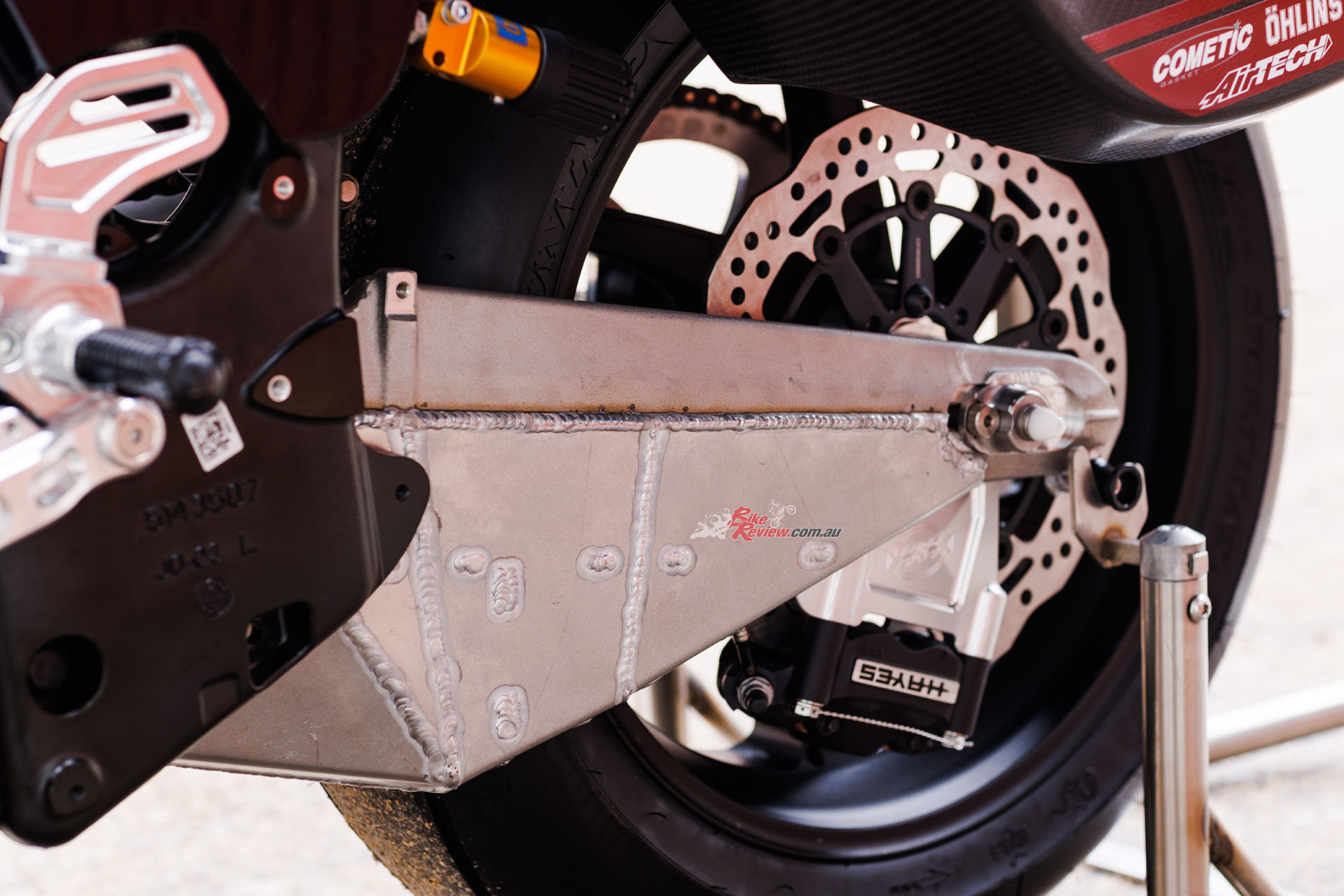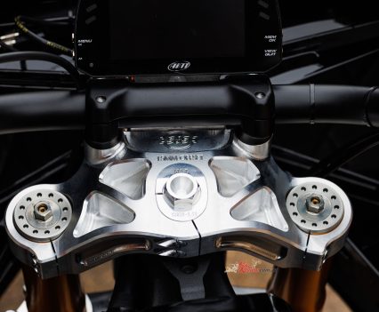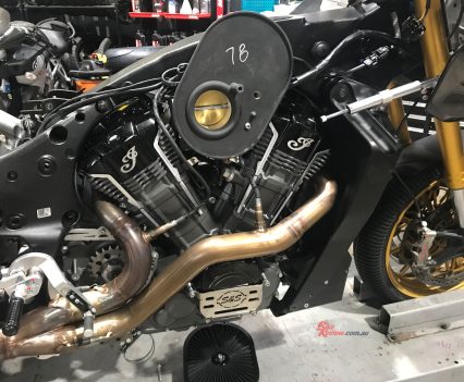 With no rider aids allowed under KOTB rules despite the ride-by-wire digital throttle – so, no TC/traction control on a racer with over 200Nm of torque! – S&S installed a Swedish-made MaxxECU Sport control module with custom wiring harness incorporating a two-way powershifter for upshifts, and an AIM DL2 dash and data logger. “Despite them being a more automotive focused company we chose the Maxx as a relatively low cost, easy to use package to control a throttle by wire system,” says Bailey. The stock six-speed gearbox has been retained, but is now matched to what is a must-have custom-made Adler slipper clutch – imagine chattering the rear wheel into a turn by using too many revs on a downshift on such a motorcycle!