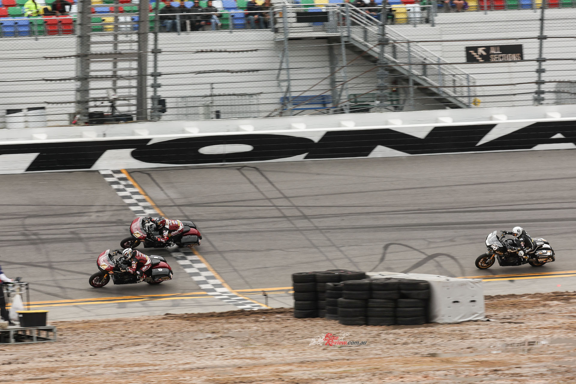 Troy Herfoss (17) leads Hayden Gillim (1), Bobby Fong (50) and Kyle Wyman (33) en route to winning the Mission King Of The Baggers Challenge on Friday at Circuit of The Americas. Photo by Brian J. Nelson