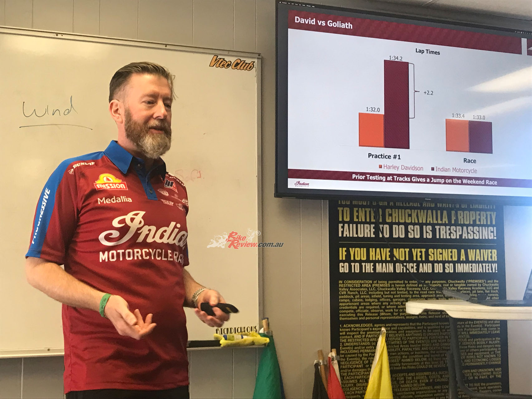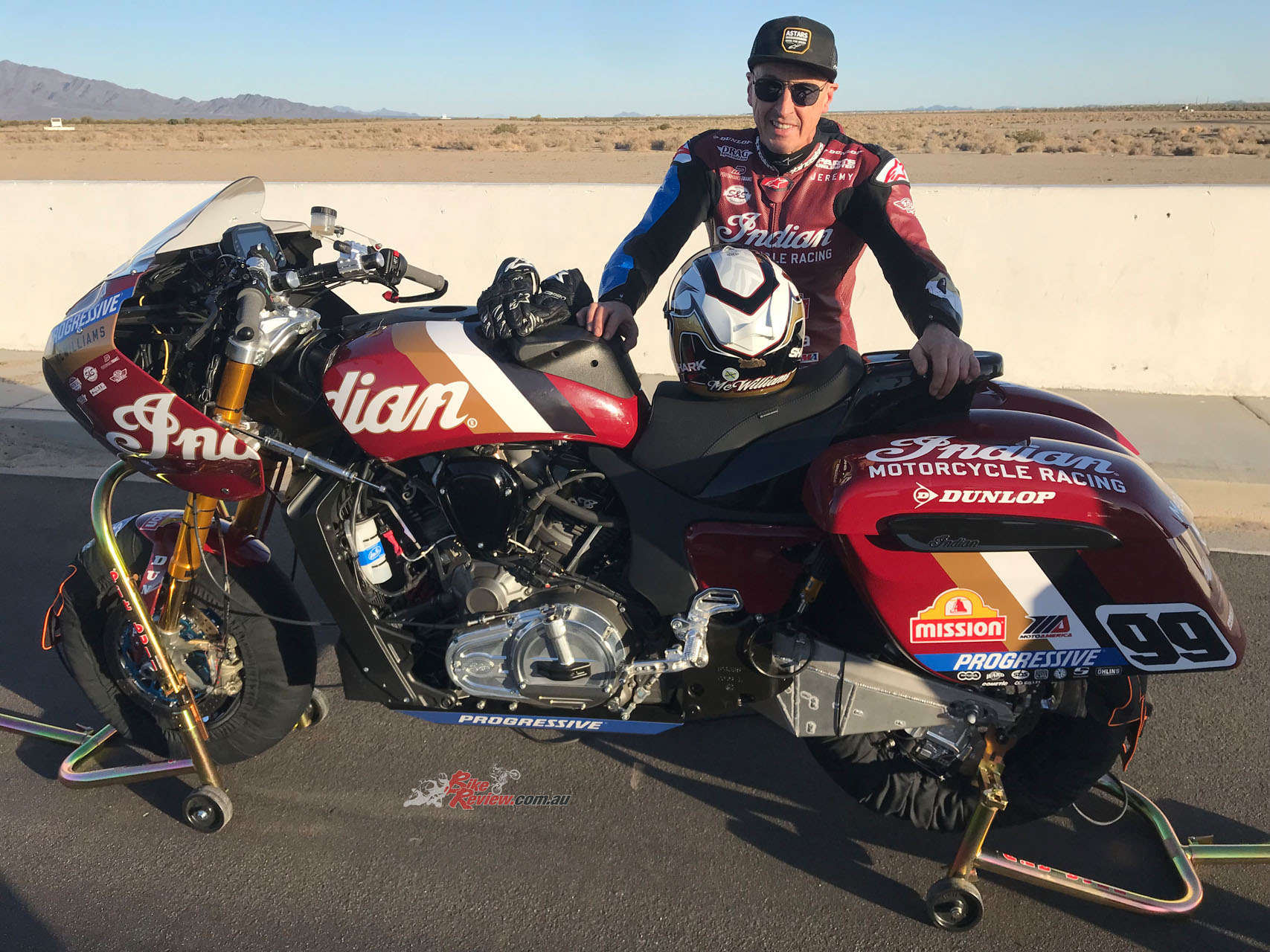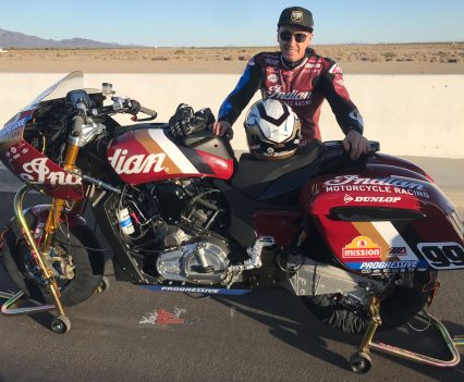 That included Indian’s pre-season test at Southern California’s 2.68mi/4.31km Chuckwalla Raceway on the edge of the Mojave Desert, where on a bitterly cold but sunny February day I was invited to be the only non-Yank in a small group of journos invited to sample the challenge of riding the bike that Jeremy McWilliams had raced to victory on the Daytona bankings one year earlier, with advice from the most versatile road racer ever on how to do so. Since then, Jeremy has decided that with his 60th birthday coming up this year maybe it was time to step back from full-on factory road racing, leaving a vacant seat that Indian was intelligent enough to recruit Troy Herfoss to fill.