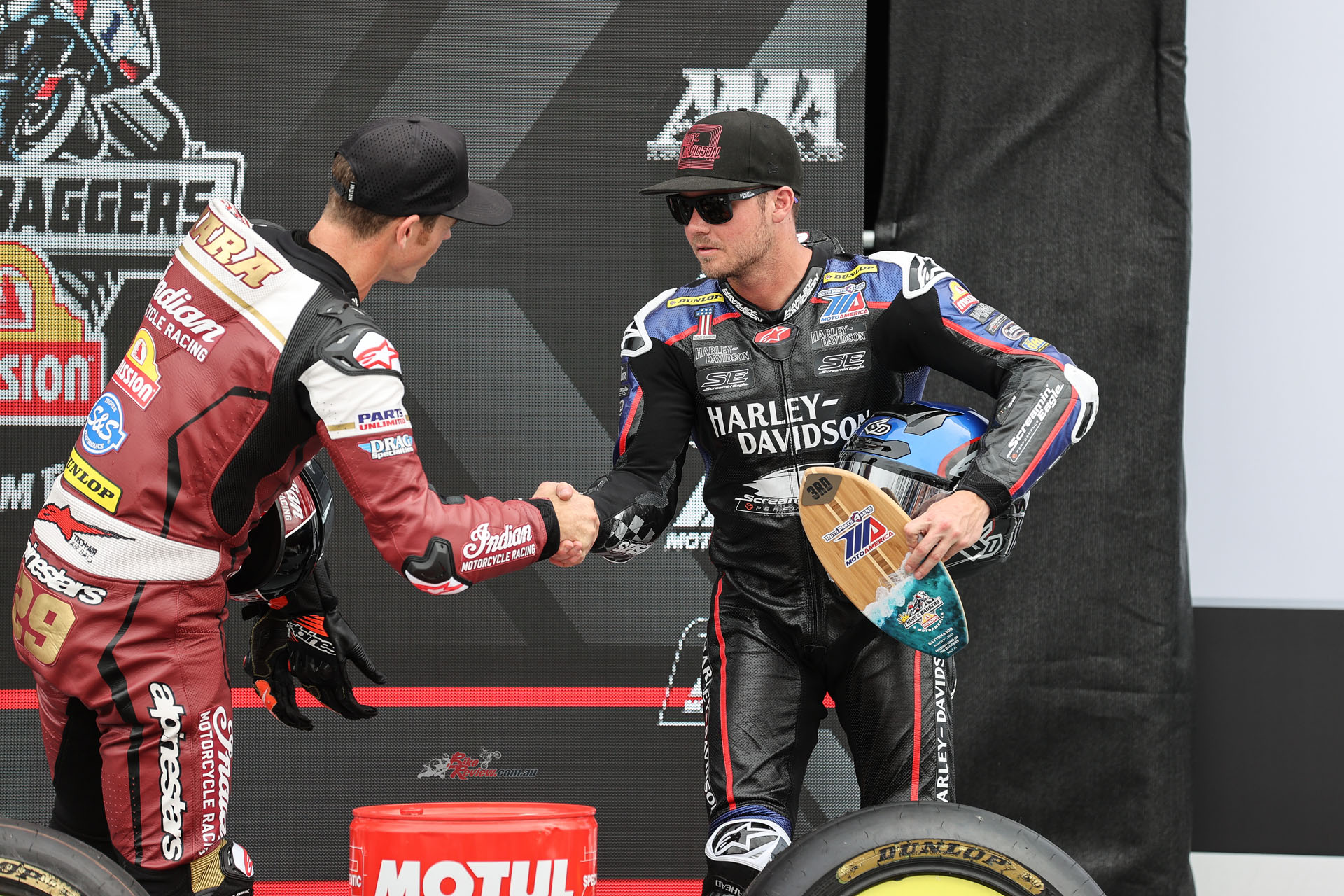 This meant a miffed Harley-Davidson considerably ramped up its 2023 race budget in an effort to regain the KoB title from relative minnow Indian – whose annual production is one-sixth that of Harley – which intensified  development of its Challenger RR via its race partner S&S. But the two factory teams took lumps out of each other, with clear evidence of over-tuning and consequent engine blowups, leaving privateer Hayden Gillim to clinch the title on his Vance & Hines Harley Road Glide by dint of scoring points in every race, with three victories and zero DNFs in the 14-race series, with teammate James Rispoli as runner-up, again with a 100 per cent finishing record.
