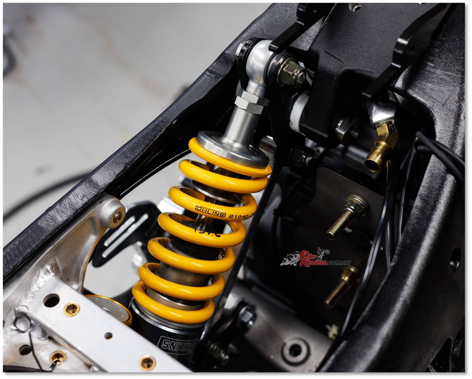 This delivers the 1640mm wheelbase as ridden at Chuckwalla that’s still mega-rangy by road racing standards, with the fully adjustable 48mm Öhlins FGR250 Superbike fork set at an unmodified 25° rake, with 114mm trail delivered via an adjustable S&S-made billet aluminium tripleclamp, with just 15mm of offset. “Together with the stock rake that we’ve retained this gives us extra front ride height in pursuit of the greater necessary ground clearance, in giving 170mm of wheel travel,” says Bailey. “This is the biggest challenge in making these bikes into racers, plus the larger diameter fork tubes give greater rigidity under braking.”