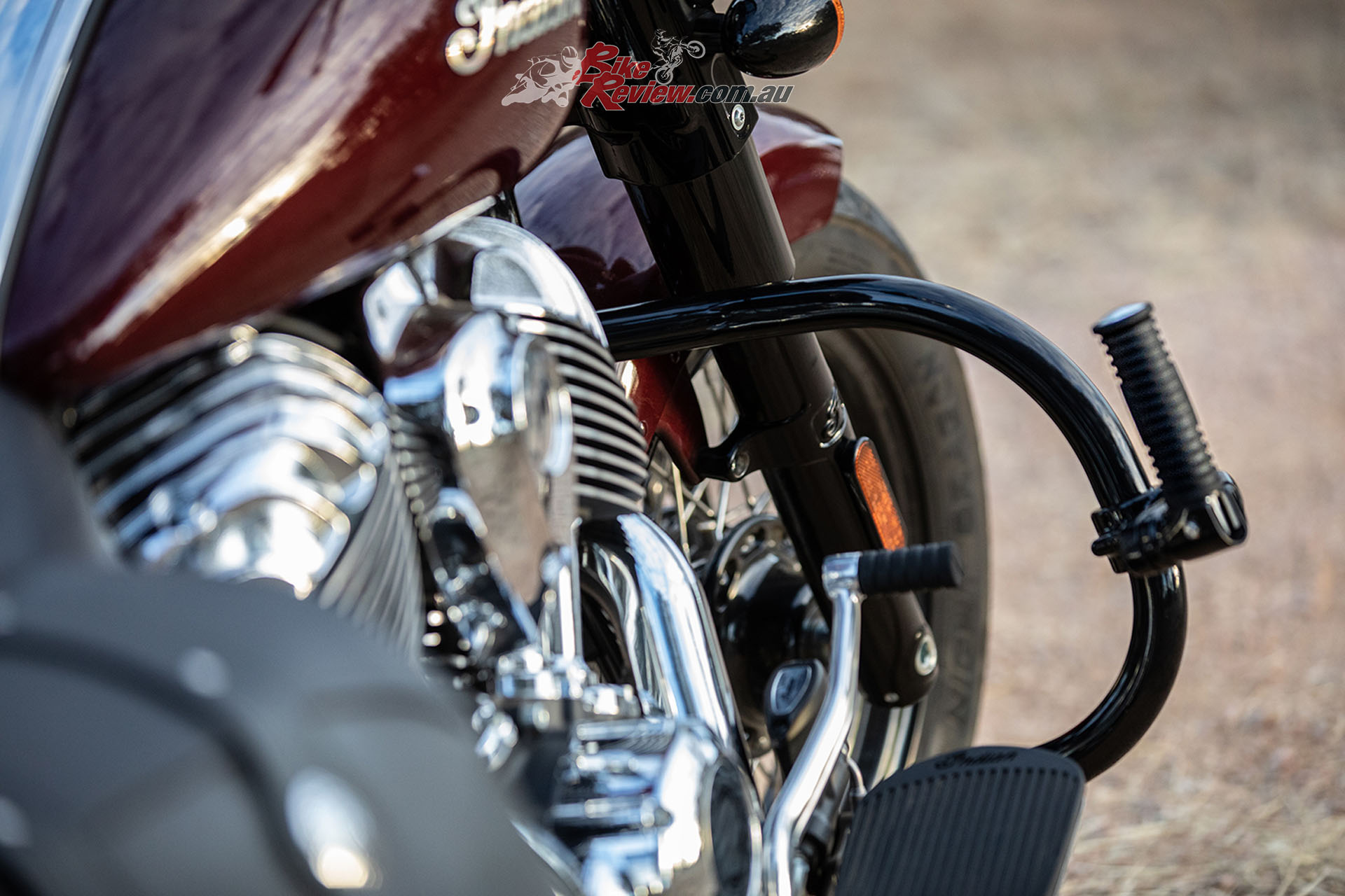 Featuring a short wheelbase of 1626mm, a low seat height of 662mm and a wet weight of 304kg, the Indian Chief lineup inspires confidence and is approachable for any rider. The Chief’s conventional 46mm front forks with 132mm of travel, 28.5-degree lean angle, and comfortable ergonomics, create a capable machine for even the most technical of ride routes.