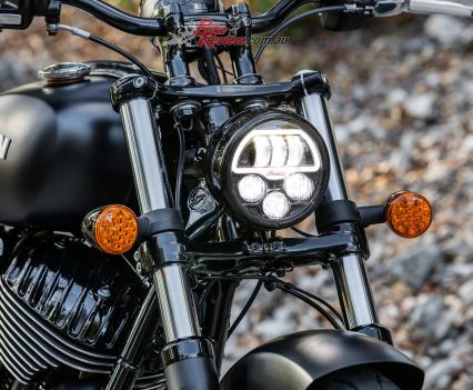 The Indian Chief Dark Horse features stripped-down, mechanical styling highlighted by drag handlebars, 19-inch cast wheels, mid-mount foot controls, a slim headlight bucket and a solo bobber seat. The Chief Dark Horse is offered in Black Smoke, Alumina Jade Smoke and Stealth Grey and will retail for $25,995 AUD ride away.