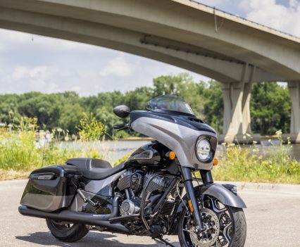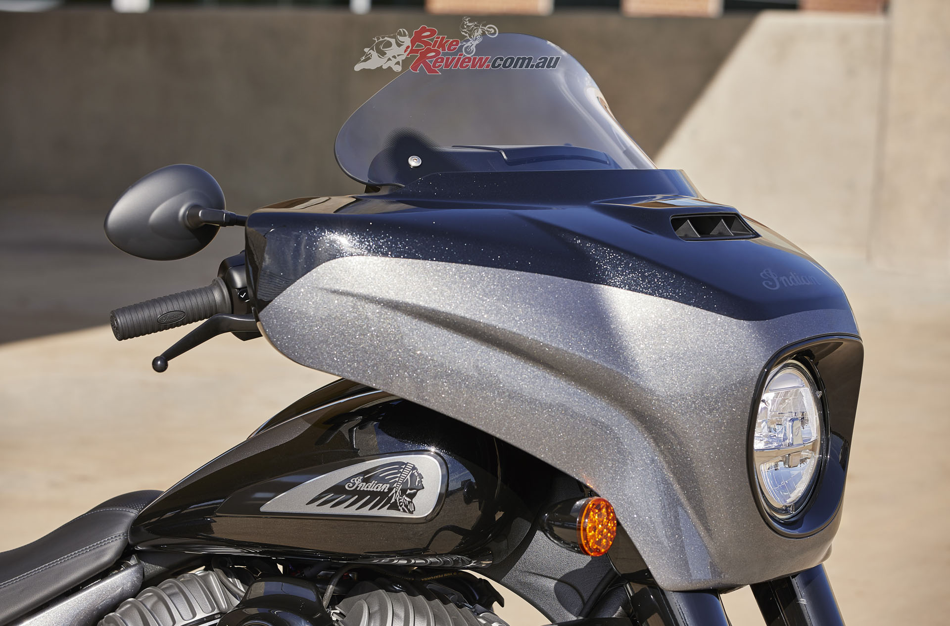 The Chieftain Elite’s two-tone Thunder Black Vivid Crystal over Carbon Crystal paint delivers a custom aesthetic.