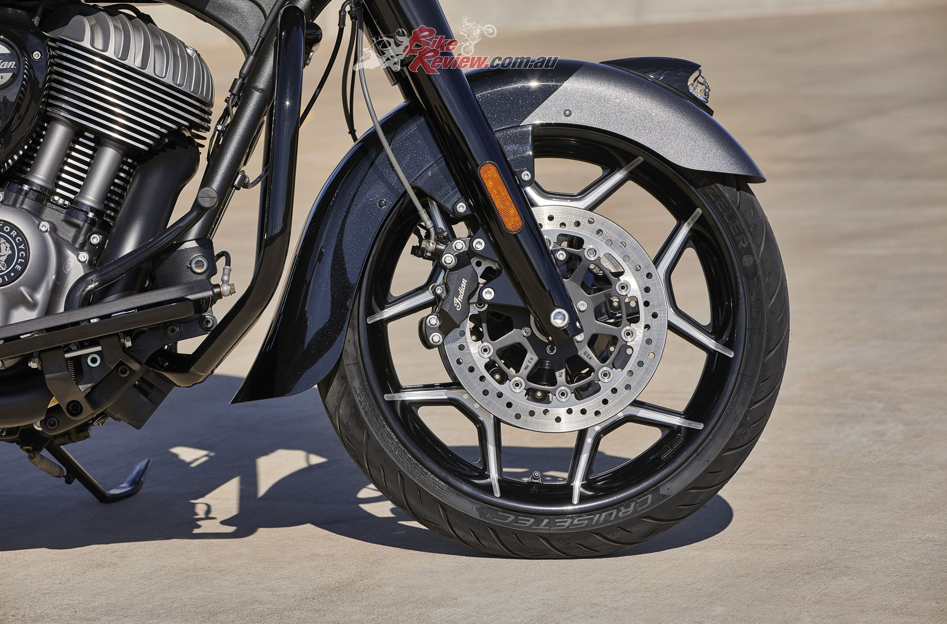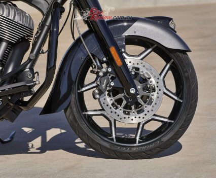 As Indian Motorcycle’s most powerful air-cooled engine, the Thunderstroke 116 delivers great performance with 171Nm of torque. Rear cylinder deactivation improves rider comfort when traversing through slower traffic, and three selectable ride modes, including Tour, Standard and Sport, allow riders to adjust the bike’s throttle response. Indian say the throttle map for each ride mode was designed with a specific application in mind, resulting in one motorcycle with three distinct personalities.