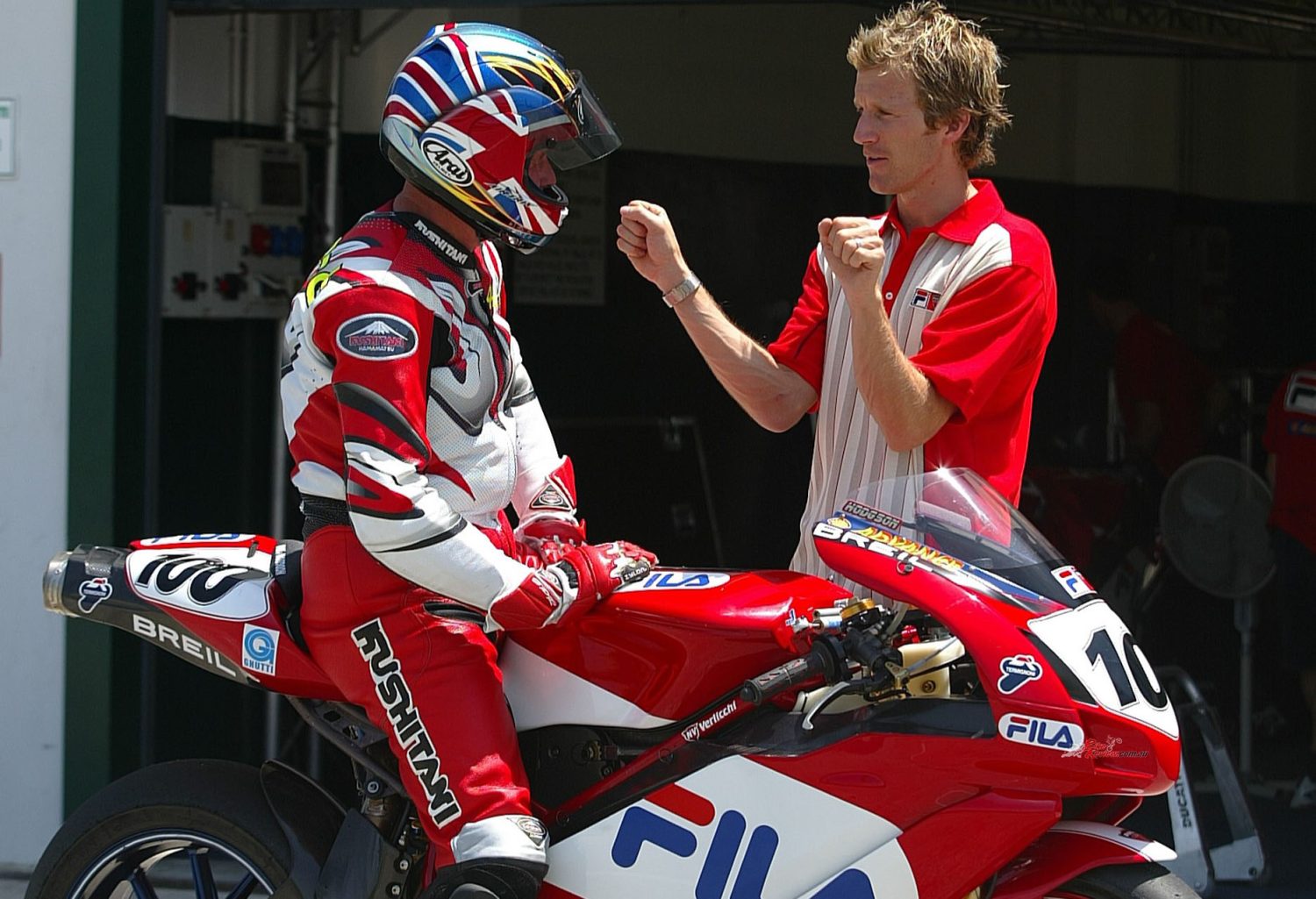 Tearing himself away from the beach for a couple of hours to watch my flawed efforts to imitate his impressive performance during the 2003 season aboard the Ducati 999 F03, was Ducati’s main man, Neil Hodgson.