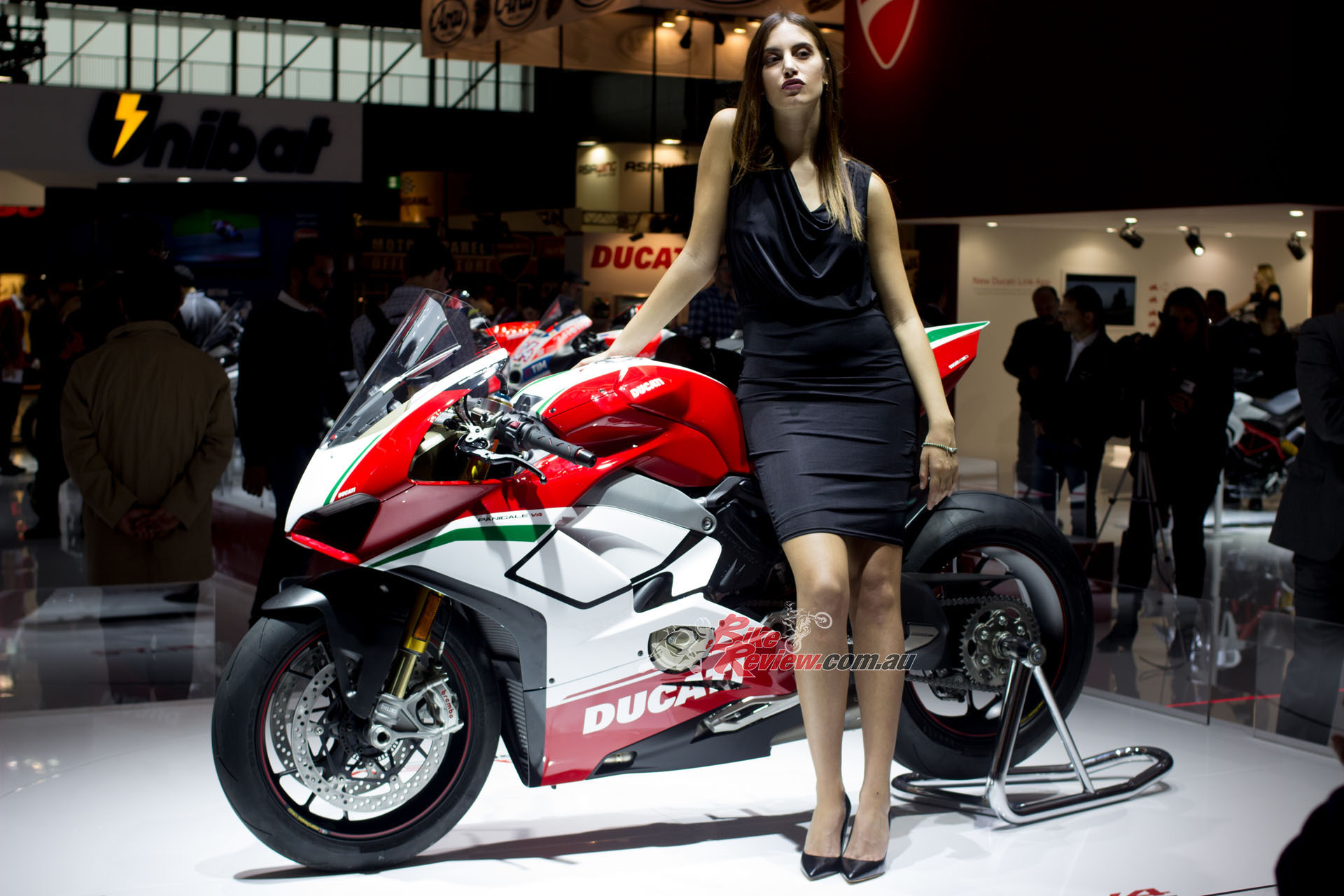 The overall aesthetics of the bike are inspired by the Panigale twin. But what really amazes is the sound. During the following days the Ducati stand at EICMA will host a stereo system that will deliver the voice of the V4 to the people. Eargasm.