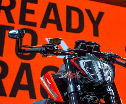 On the other side, the street legal brother, called the Duke 790, will combine 105hp with a claimed dry weight of 169kg. Steel frame with the engine as a stressed member, aluminum sub-frame, WP suspension. Ready to ride. Or, as KTM puts it, ‘Ready to Race’. But not on the street guys.