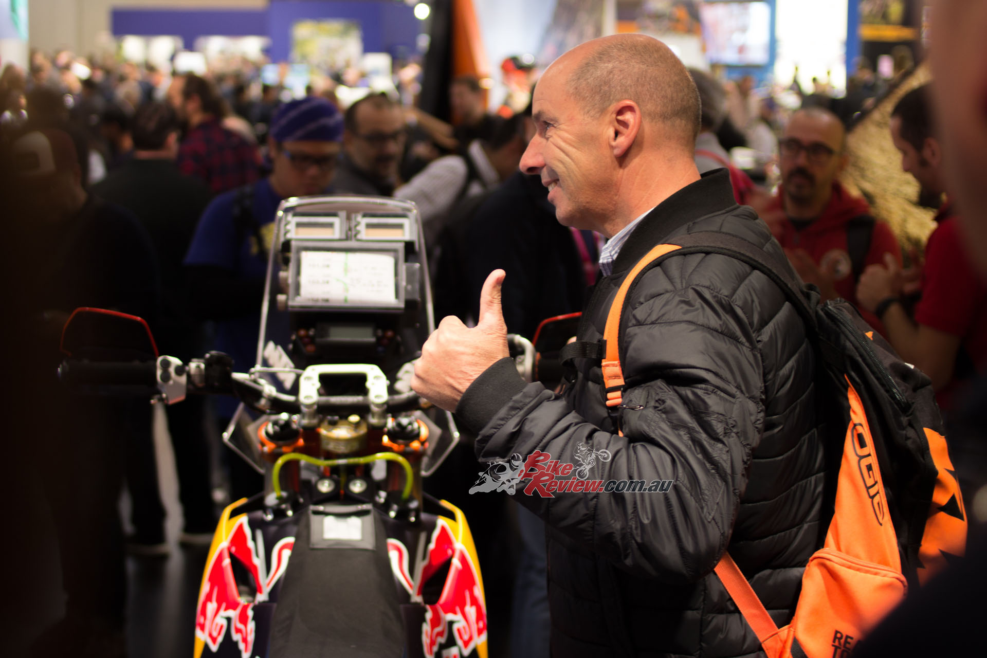 KTM, on the other side, focuses again on racing. The road bikes are pushed by the growing results of the MotoGP team, the off-road bikes are already on the top. Also thanks to an Italian. Nine-times World Champion Tony Cairoli greets the fans close to the 790 Adventure R, which is unveiled only as a concept and will not be available in the stores in 2018.