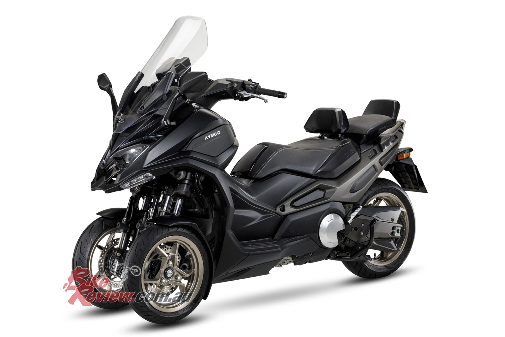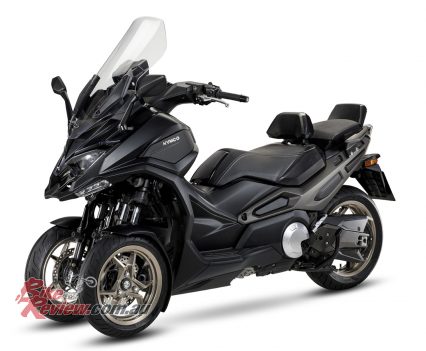 The KYMCO CV3 also features ABS; traction control; cruise control, full LED lighting and dash; keyless ignition system, and a large-capacity underseat storage compartment. The three wheeler is looking to enter the same section of the market that mopeds like the Piaggio MP3 and Yamaha Tricity 300 sit in.