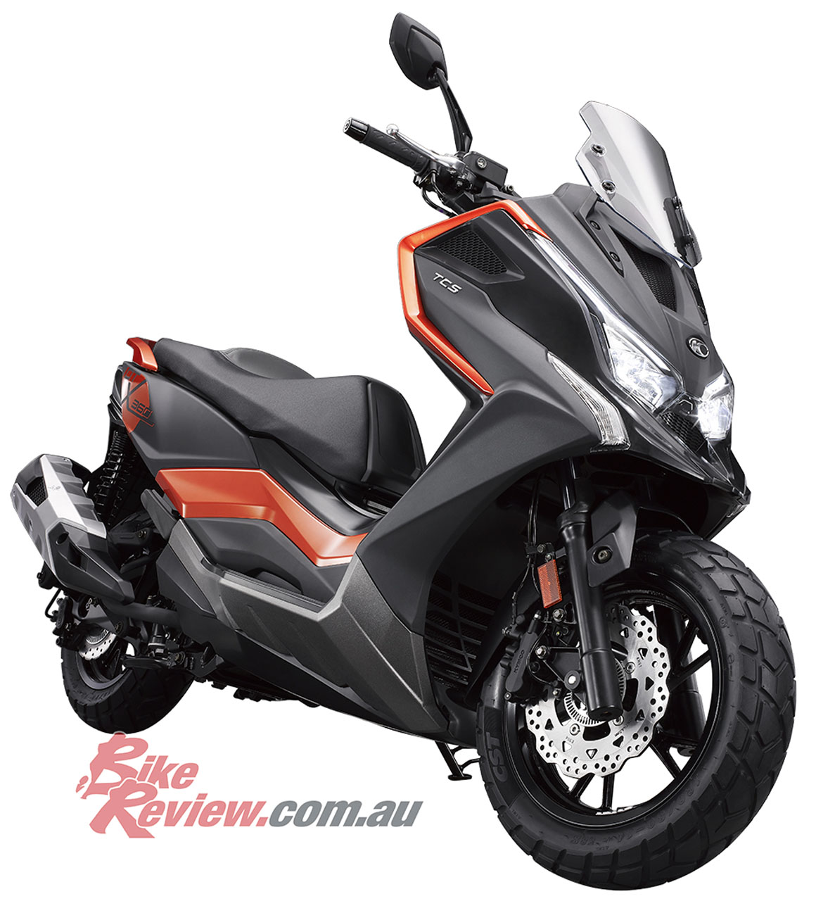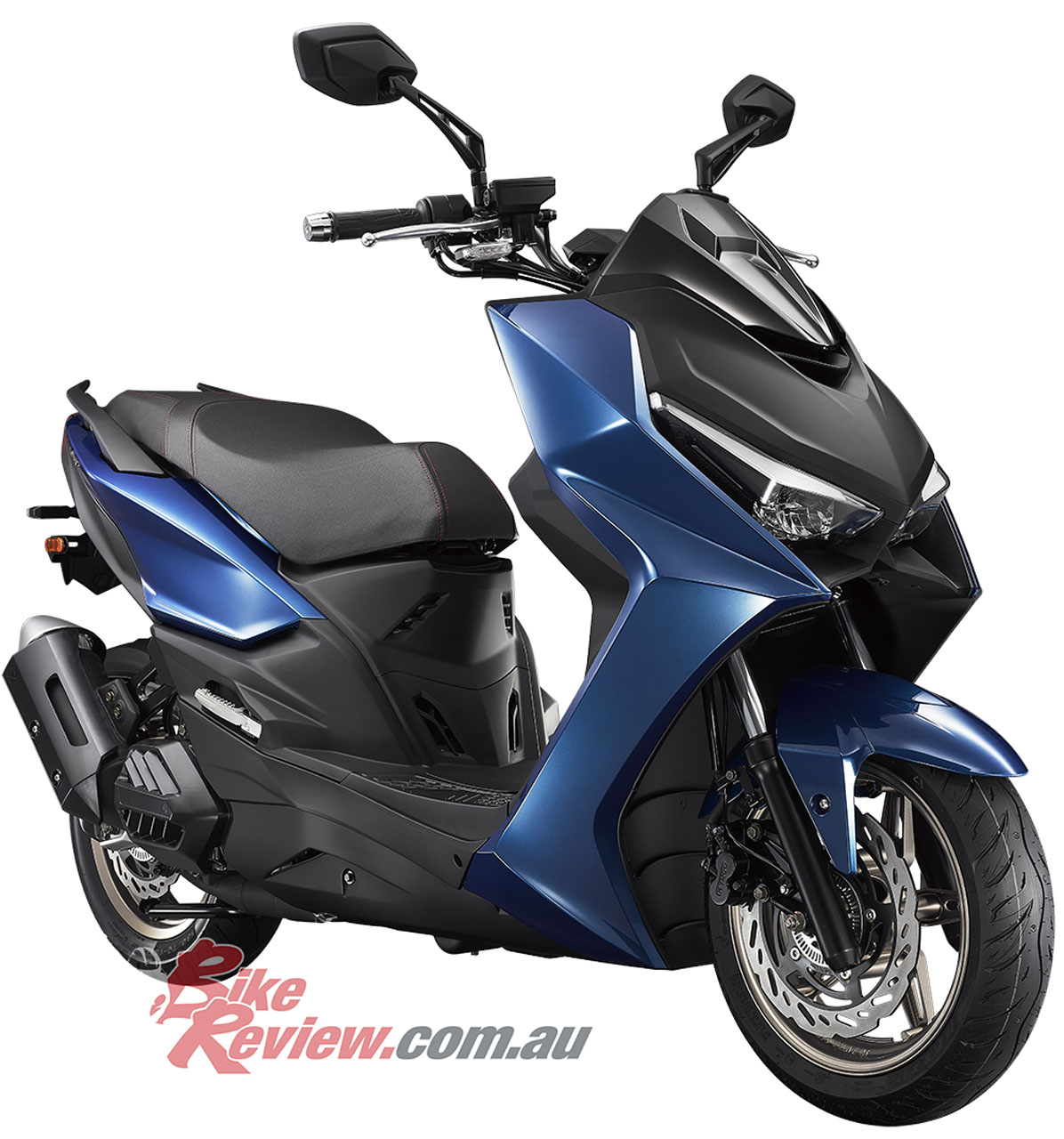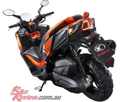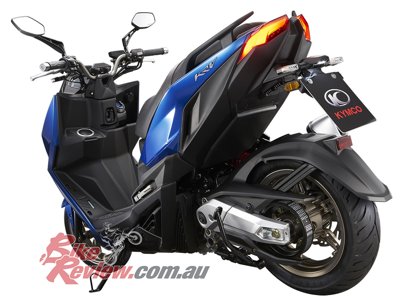 The independent swingarm feature on the KRV was been derived from KYMCO’s flagship AK 550 maxi-scooter. This KYMCO say this allows for a lower centre of gravity, optimum weight balance as well as a premium ride quality and maximum cornering capability. The KRV also has a flat-floor body design which has proved a comfortable lay out in other scooter models.