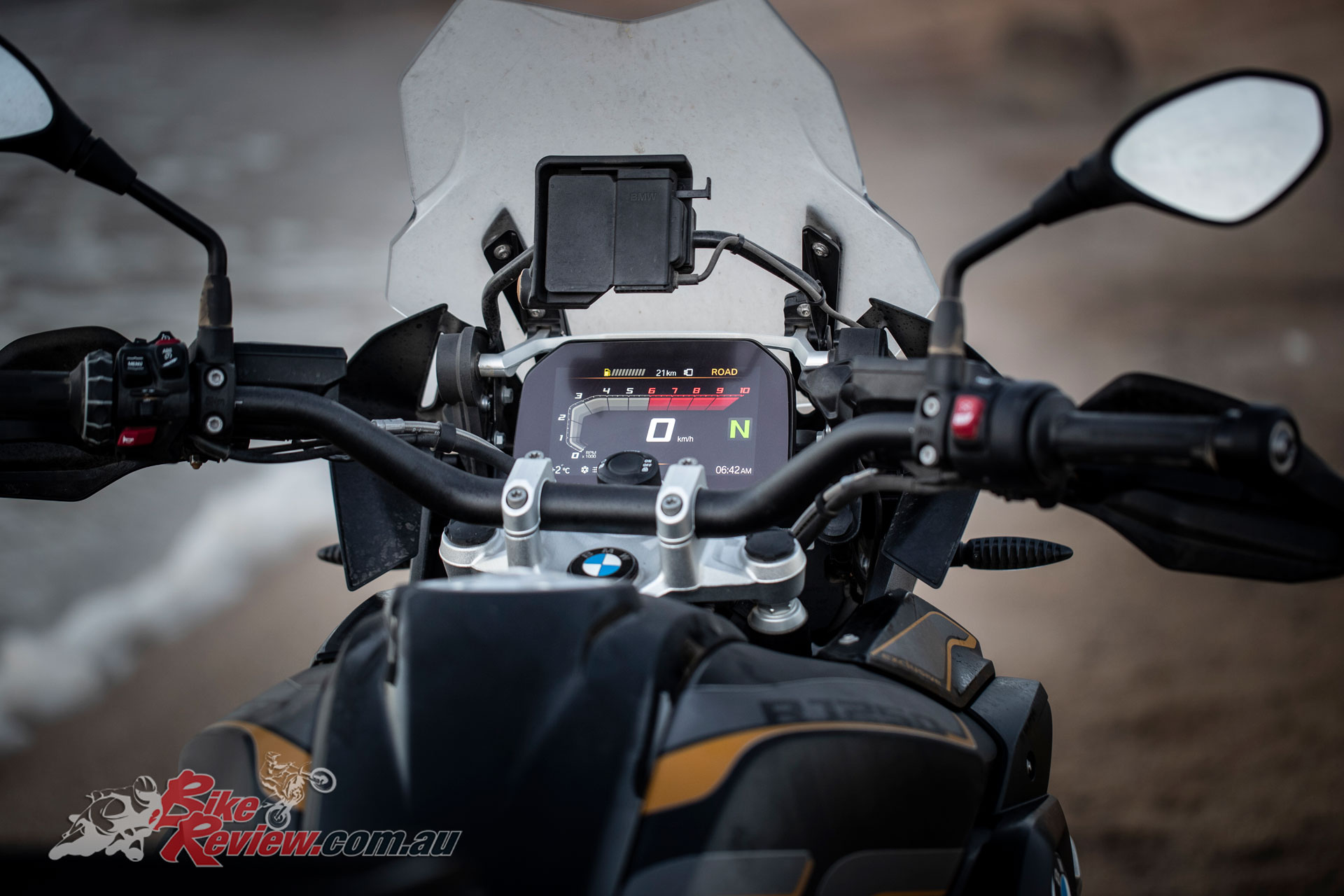 Speaking of the DTC, there is a lot of rider aid technology on this bike, which certainly helps in keeping a heavy, powerful bike under control in challenging situations. Pre-set rider modes include Rain and Road as standard, with Dynamic Pro, and Enduro Pro modes available as optional equipment. I mostly cycled between the Dynamic Pro and Enduro Pro settings throughout our ride, as these give the lowest levels of intervention, and still allow a significant amount of rider control over the available traction.