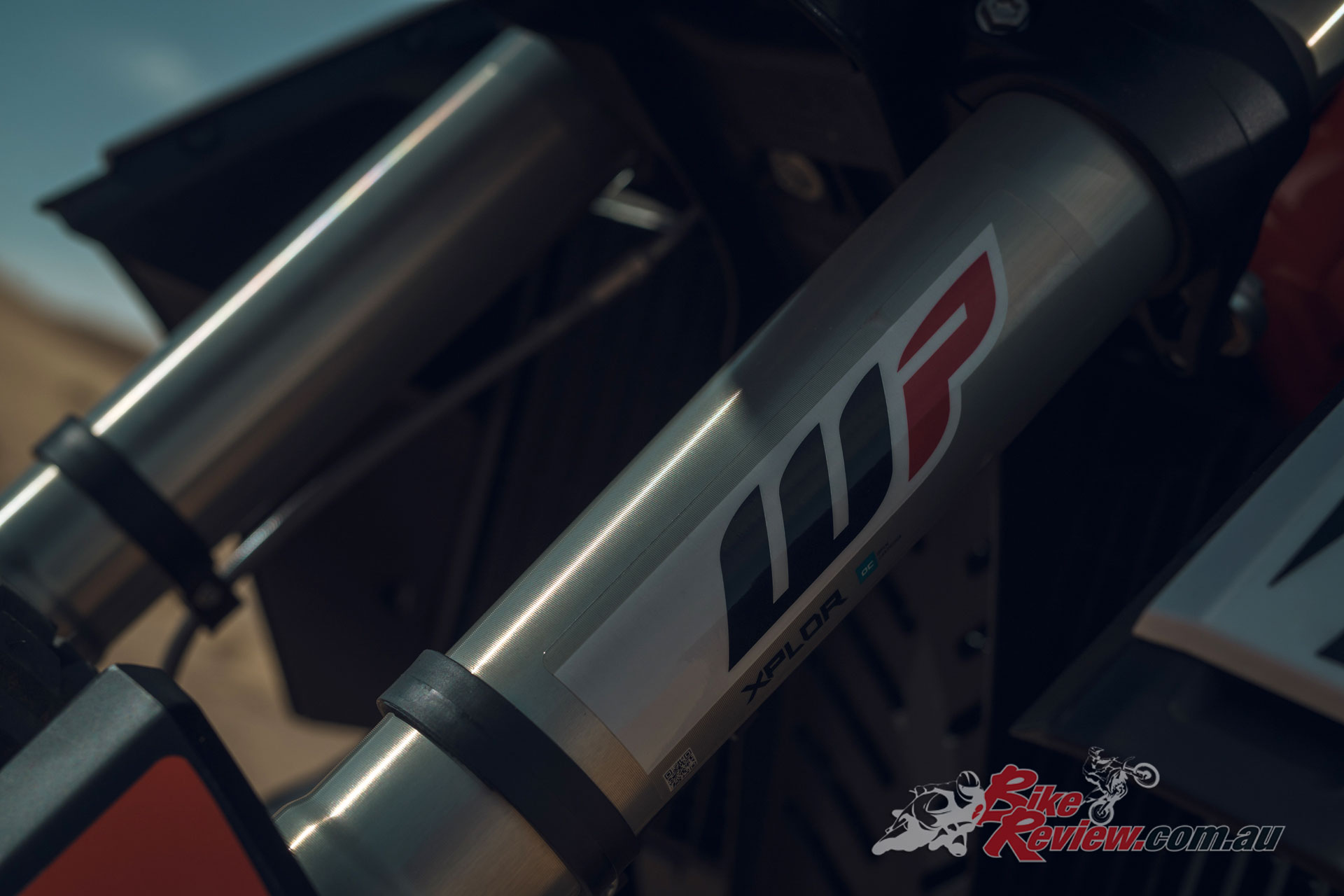 Brakes: Bosch 9.1 MP Cornering ABS with off-road mode, 320mm front rotors, dual radially mounted four-piston calipers, single 260mm rear rotor, two-piston floating caliper