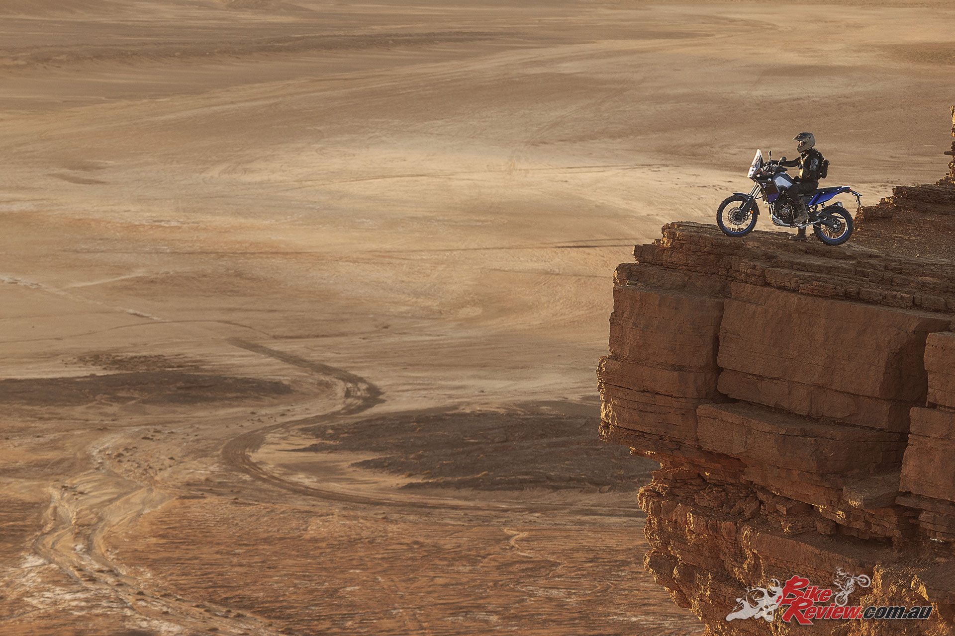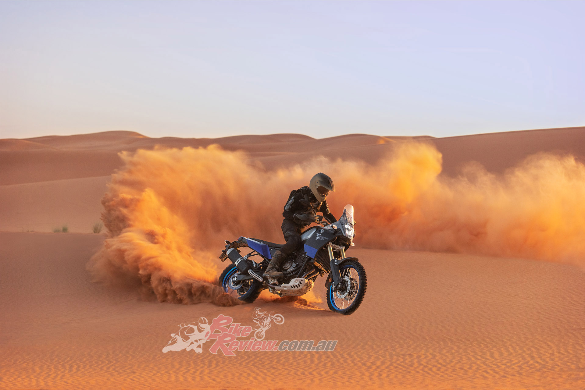 Now Yamaha’s contender is finally here, more than two years after the T7 concept’s debut at the Milan show, it is clearly different to those other middleweights. You’ve only got to register its amazing $15,499 + ORC price, way below those of the European models and Honda’s Africa Twin, to realise that the Ténéré stands alone in the adventure market – appropriately enough for a model that owes its name to a desert in north Africa, where an XT500 won the first Paris-Dakar Rallies in 1979 and ’80.