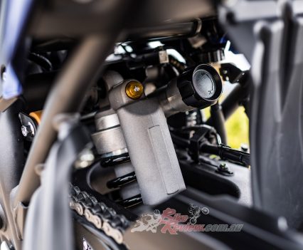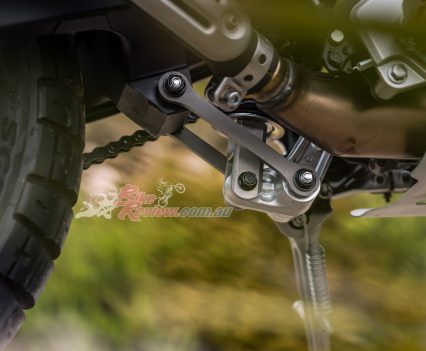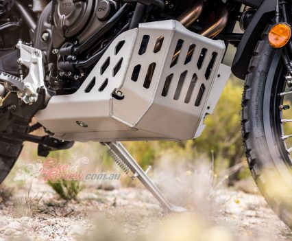 The cooling system is uprated and the final gearing shortened but the key engine-related change is arguably the sturdy aluminium bash-plate, and that is bolted to the removable twin downtubes of the new tubular steel frame.