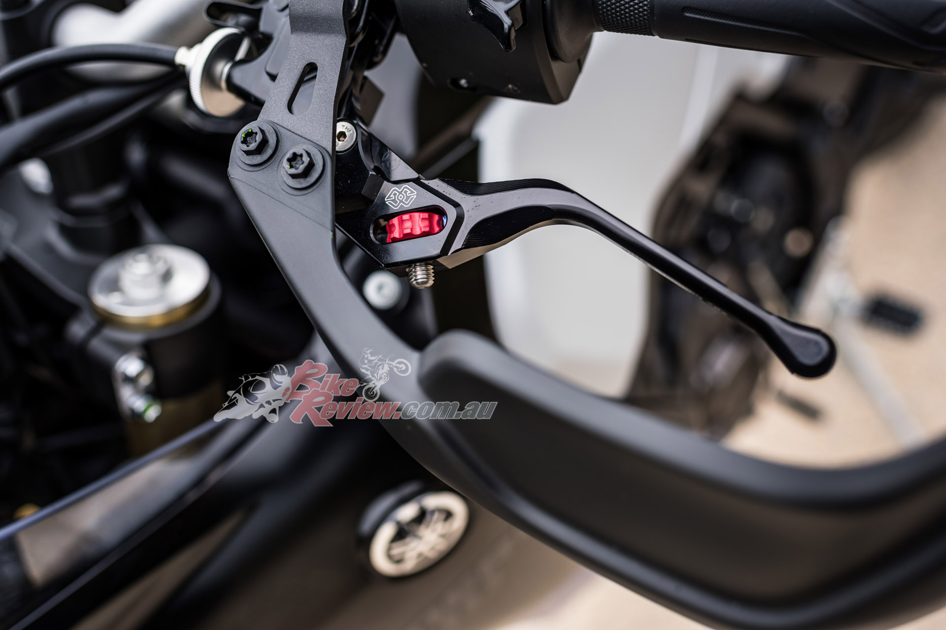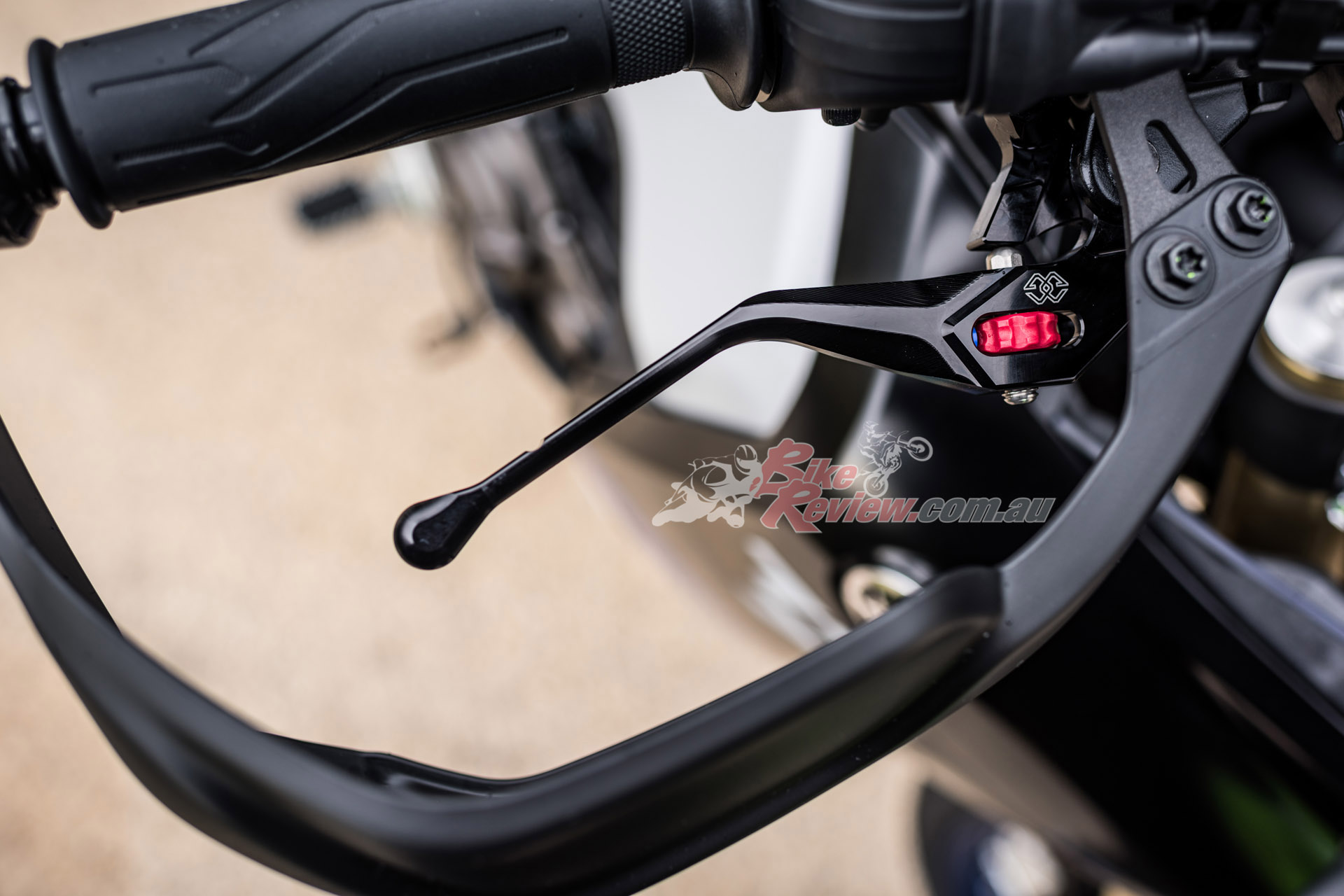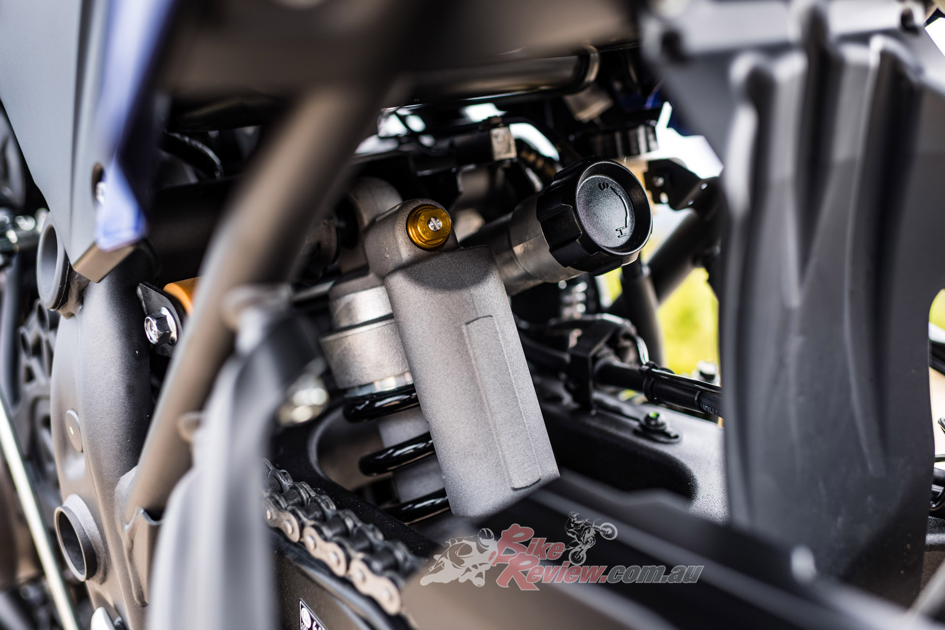 Suspension is by KYB and gives plenty of travel: 210mm from the 43mm usd forks, which are adjustable for compression and rebound damping; and 200mm for the remote-reservoir shock, which has a remote preload knob and can also be fine-tuned for rebound.