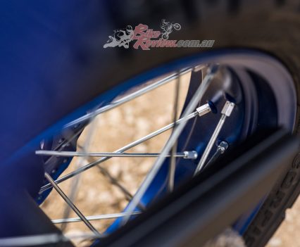 Wheels are wire-spoked and come in dirt-friendly diameters of 21in front, 18in rear. Brakes are wavy discs, with 282mm front discs gripped by twin-piston calipers, and a 245mm disc at the rear. The ABS can be disabled by pressing a button on the instrument panel.