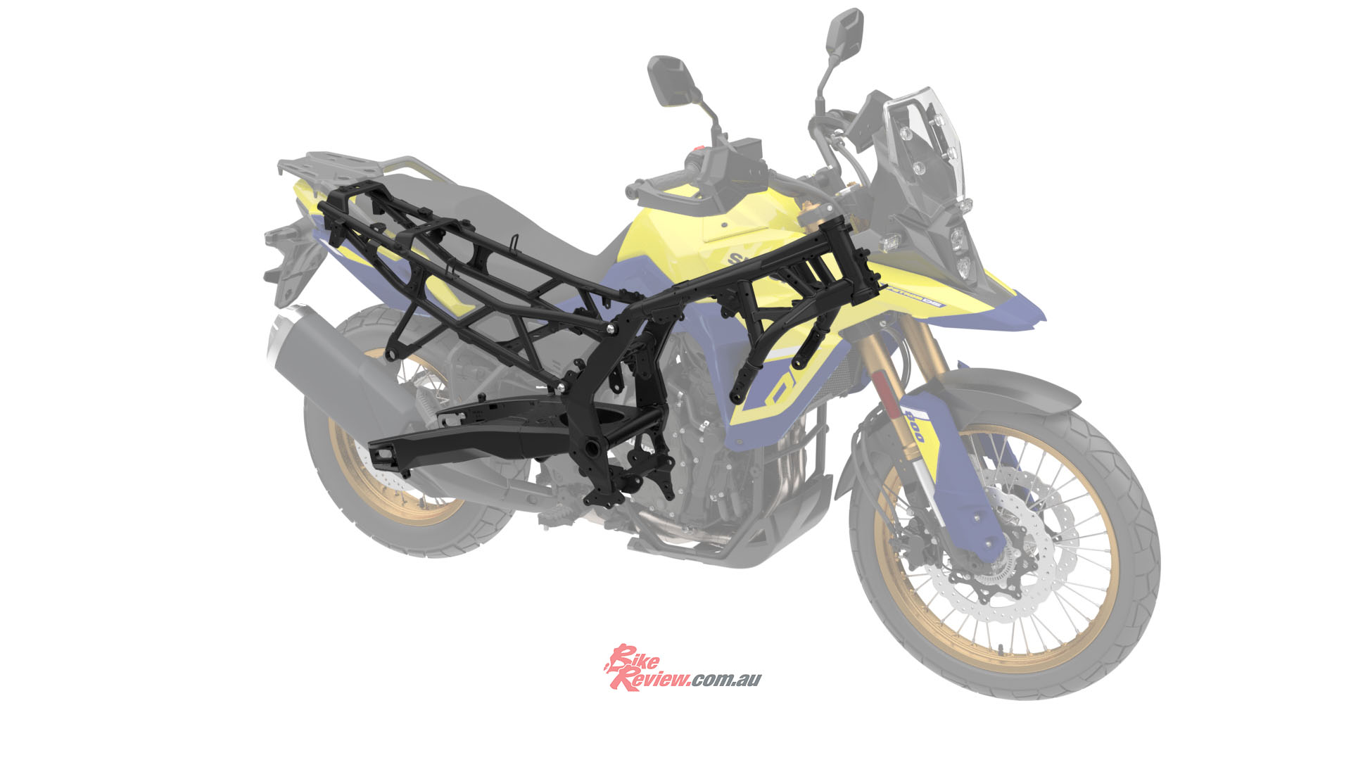 - A rugged new steel frame developed for the V-STROM 800DE contributes to comfort, straight-line stability, and nimble handling.