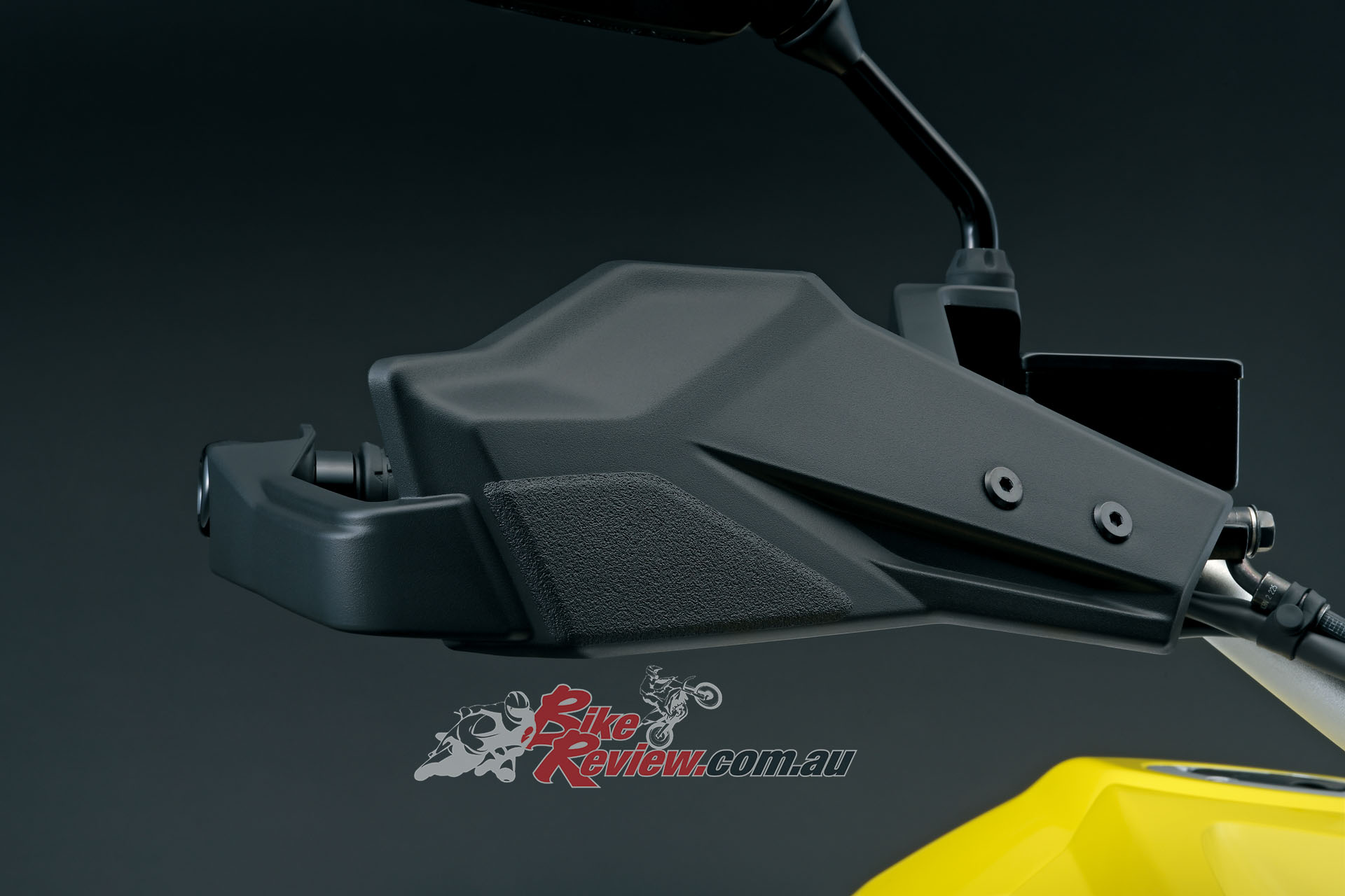 to the distinctive character of the V-STROM series. - The distinctive V-STROM “beak” is positioned higher to visually convey the extended suspension stroke and the model’s ability to handle gravel roads and flat trails.