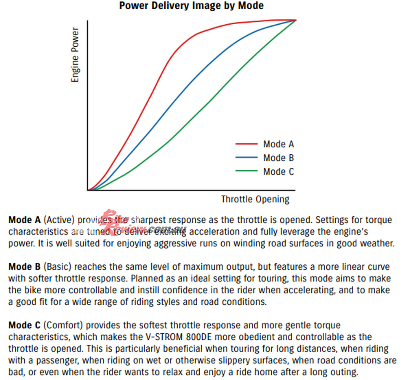 - In addition to its 3 standard mode settings (+ OFF), Suzuki Traction Control System (STCS) for the V-STROM 800DE introduces G (Gravel) mode as a fourth setting designed to help riders better negotiate gravel roads and flat trails.