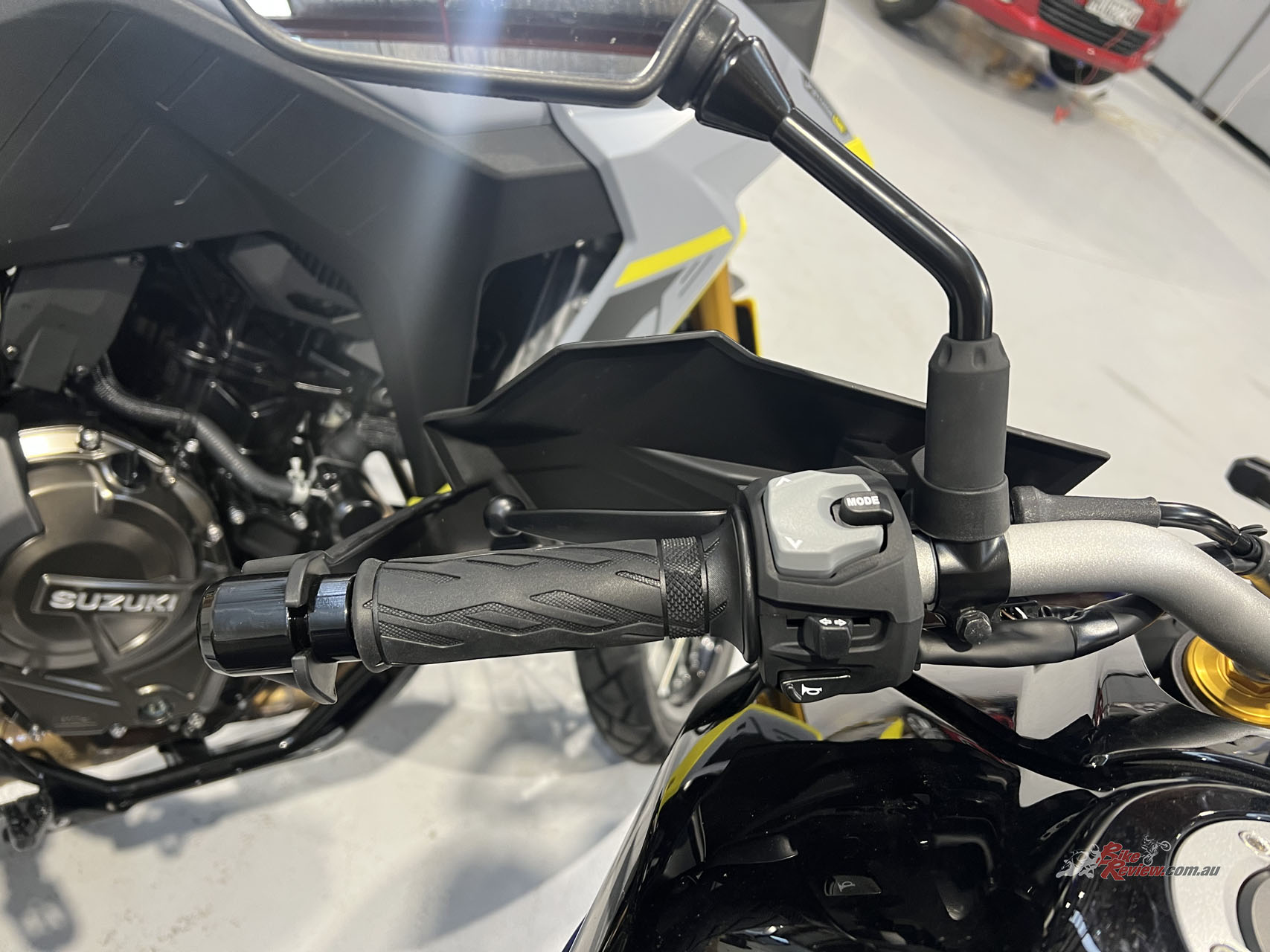 Switching to a lower power mode made the V-STROM 800DE a lot easier to handle in slippery conditions.