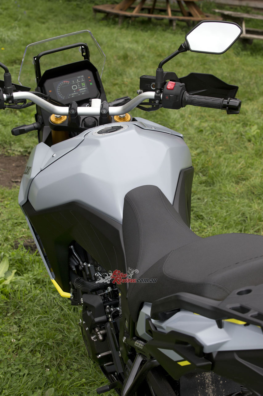 Ergonomics for stand-up riding are remarkable. As mentioned previously, I adjusted the ‘bars to an upright position and it completely transformed the ride. Even at 184cm, I can stand up with my legs mostly straight and still be within reach of everything. There’s no wrist strain or ankle fatigue and that quickshifter is remarkable for stand-up riding, I don’t know how adventure riders live without one.