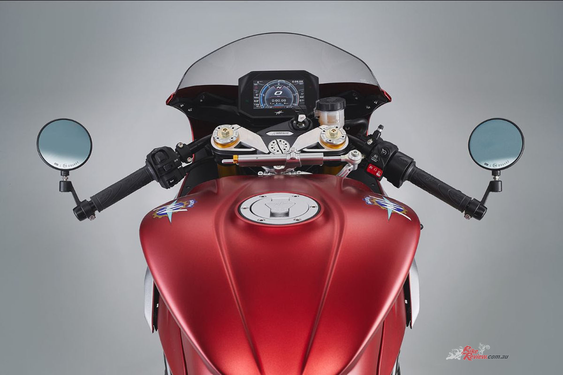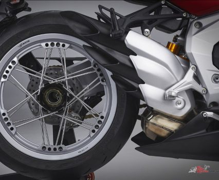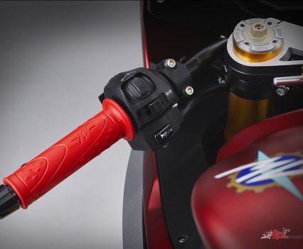 What’s more, the Arrow asymmetrical exhaust system not only significantly guarantees an increase in power and torque but also contributes to intensify the Superveloce Ago racing character. MV Agusta say without a doubt, this new Arrow exhaust system was inspired by the racing bikes of the past, protagonists of many glorious victories. The dedicated Engine Control Unit with dedicated engine mapping is another exclusive element that allows the maximum performance of the exhaust system.