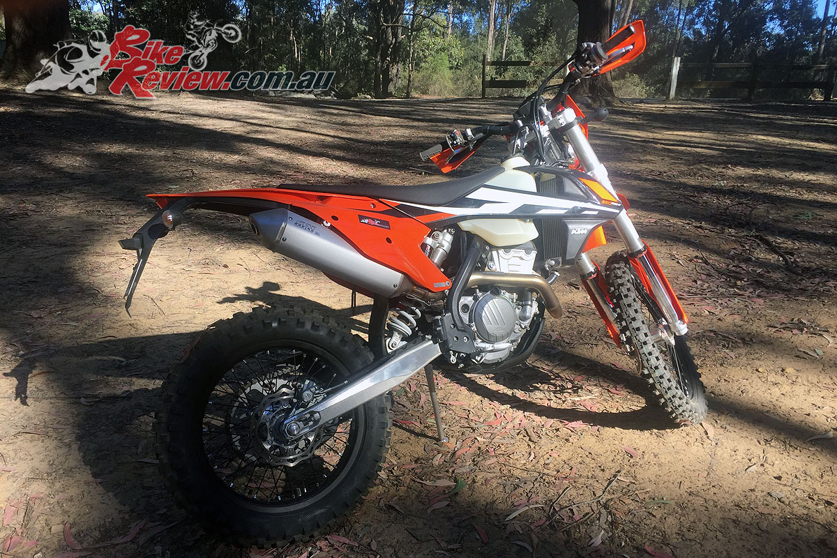Wow, the 350 EXC-F feels lighter off the stand than the last two-banger I owned! While lacking the outright punch of its larger siblings, it’s certainly no slouch. Get the 350 revving and you have everything you need to go very, very fast, yet calm enough for a beginner to purchase and never ‘need’ to upgrade.