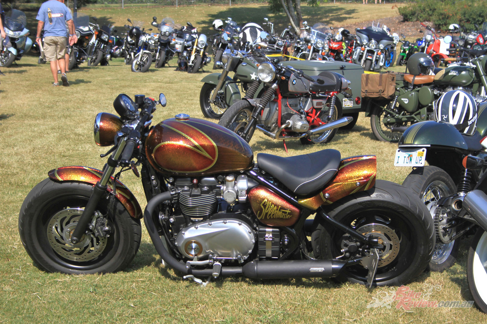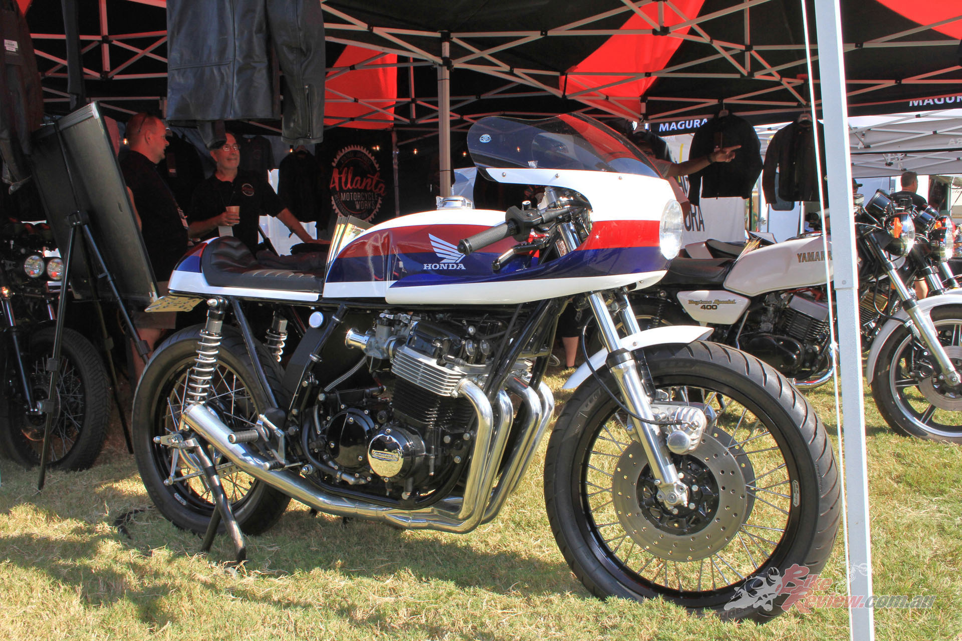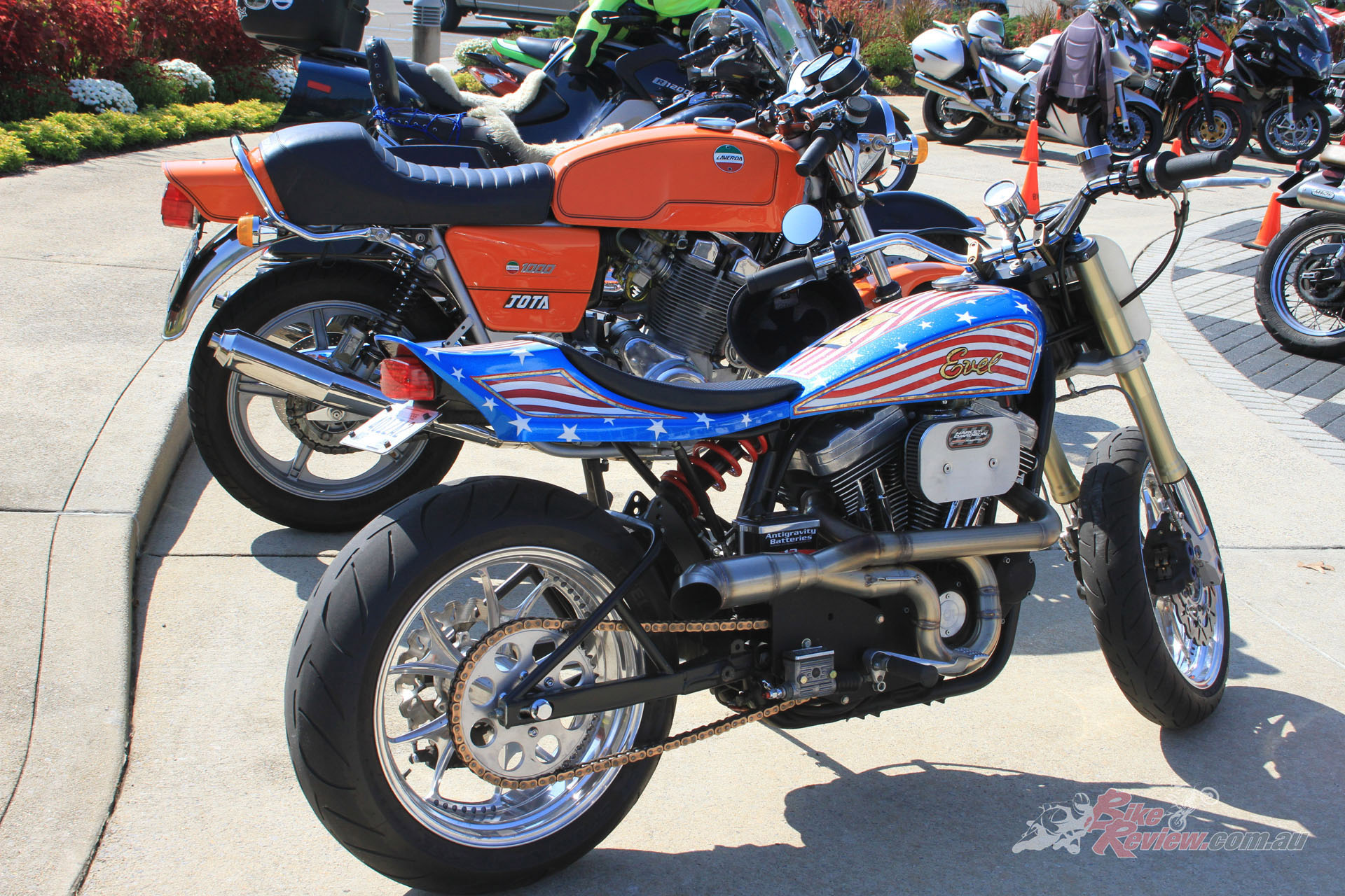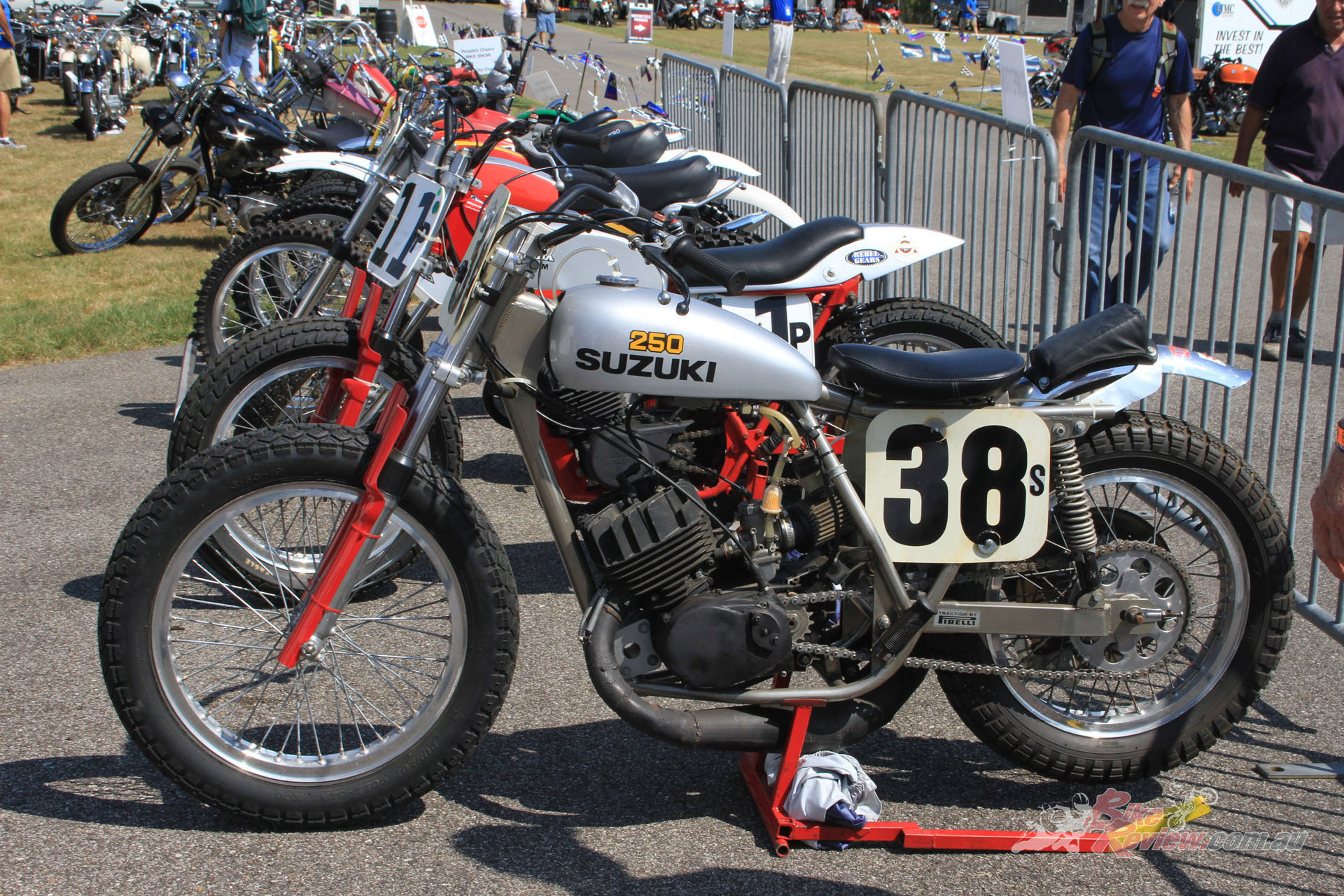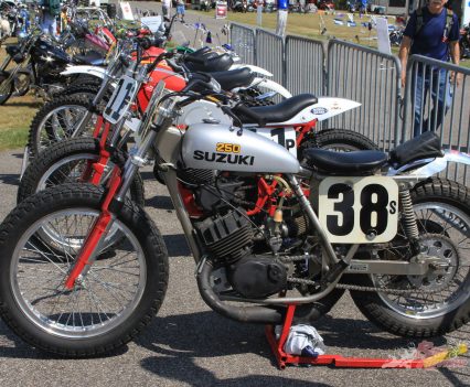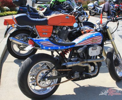 Elsewhere, an impressive line-up of machinery in front of the Vintage Japanese MC saw even more Honda twins alongside a variety of Seventies trail bikes and a glut of early inline fours. While the Antique Motorcycle Club of America had an impressive display of mainly home-market material, plus the occasional Brit classic and a fascinating array of classic flat-trackers, and a handful of choppers.