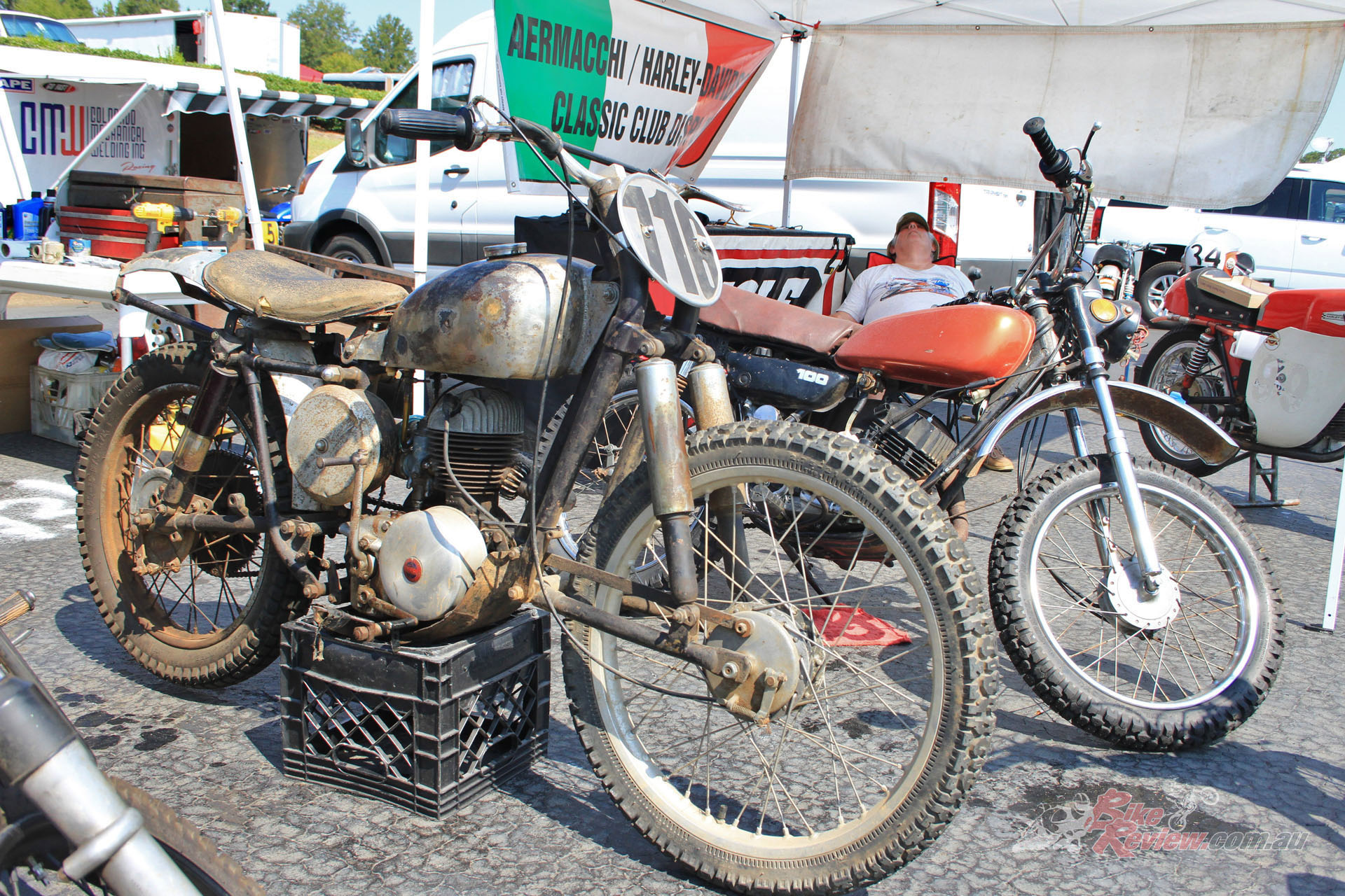 But the rare machinery wasn’t just on show, as a surprisingly large number of them were being used for transport around the site. As the Motorsports Park encompasses no less than 880 acres, it was something of a task to cover the grounds on foot, and while golf carts were available for hire, most folk used their bikes. Apart from the obvious choices such as classic Honda Monkey bikes and Cushman scooters, there were some real rarities being used. Essentially, if you can think of a type of classic bike, there was one there somewhere.