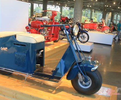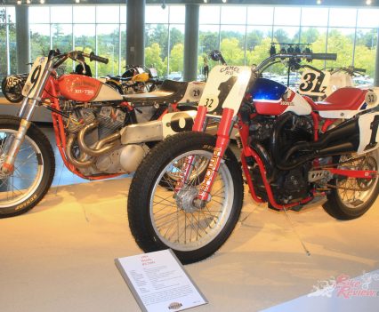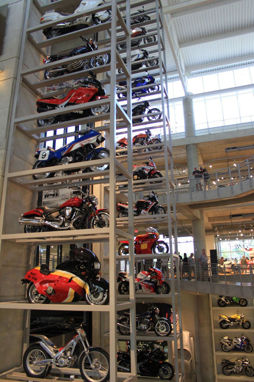 That all-encompassing variety of machinery was exemplified within the walls of the 230,000 square feet of the museum. Not just in the number and variety of bikes on view, but in the way that they are displayed. The ceiling-high racks that line the walls and the lift shaft, which were 14 bikes high; the ‘christmas tree’ stacked bike displays; the mopeds hanging from cables; the wooden board racing display; the Daytona 200 race banking and the off-road bridge / jump.