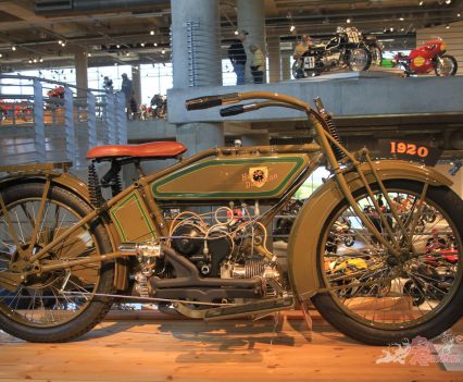 Perhaps the most impressive aspect of the, frankly colossal, museum is that the bikes on display aren’t just rarities or factory prototypes, but also more common production bikes such as a Suzuki Hayabusa, a SOHC Honda 750, Yamaha FZ750, Kawasaki Z1, Triumph Rocket III etc. But perhaps the most fascinating section is that of the early machinery produced prior to World War 1, and the amazing American built Harleys, Popes, Indians, Hendersons and more.