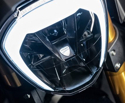 The dashboard consists of a TFT screen with a separate warning light module, positioned, respectively, below and above the handlebars. The dashboard has four different display modes. New to Ducati, the Default mode provides a minimal must-have level of information, presented in an attentively styled manner. The other three, instead, are the classic Track, Full and City display modes associated with the Riding Modes. The bike has dedicated switchgears with red-backlit keys. Cruise Control has dedicated keys to activate and adjust the speed settings.