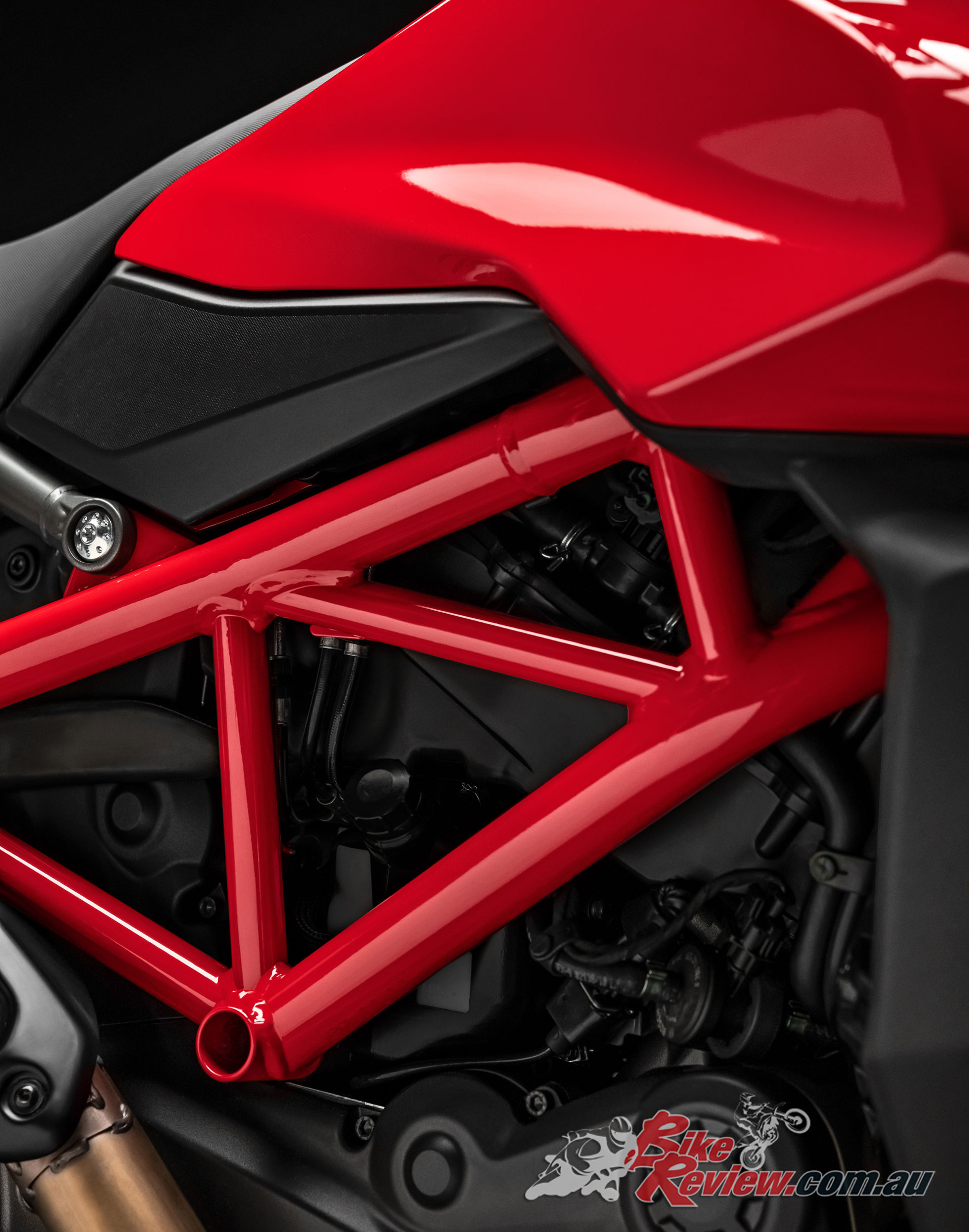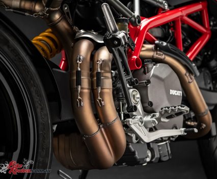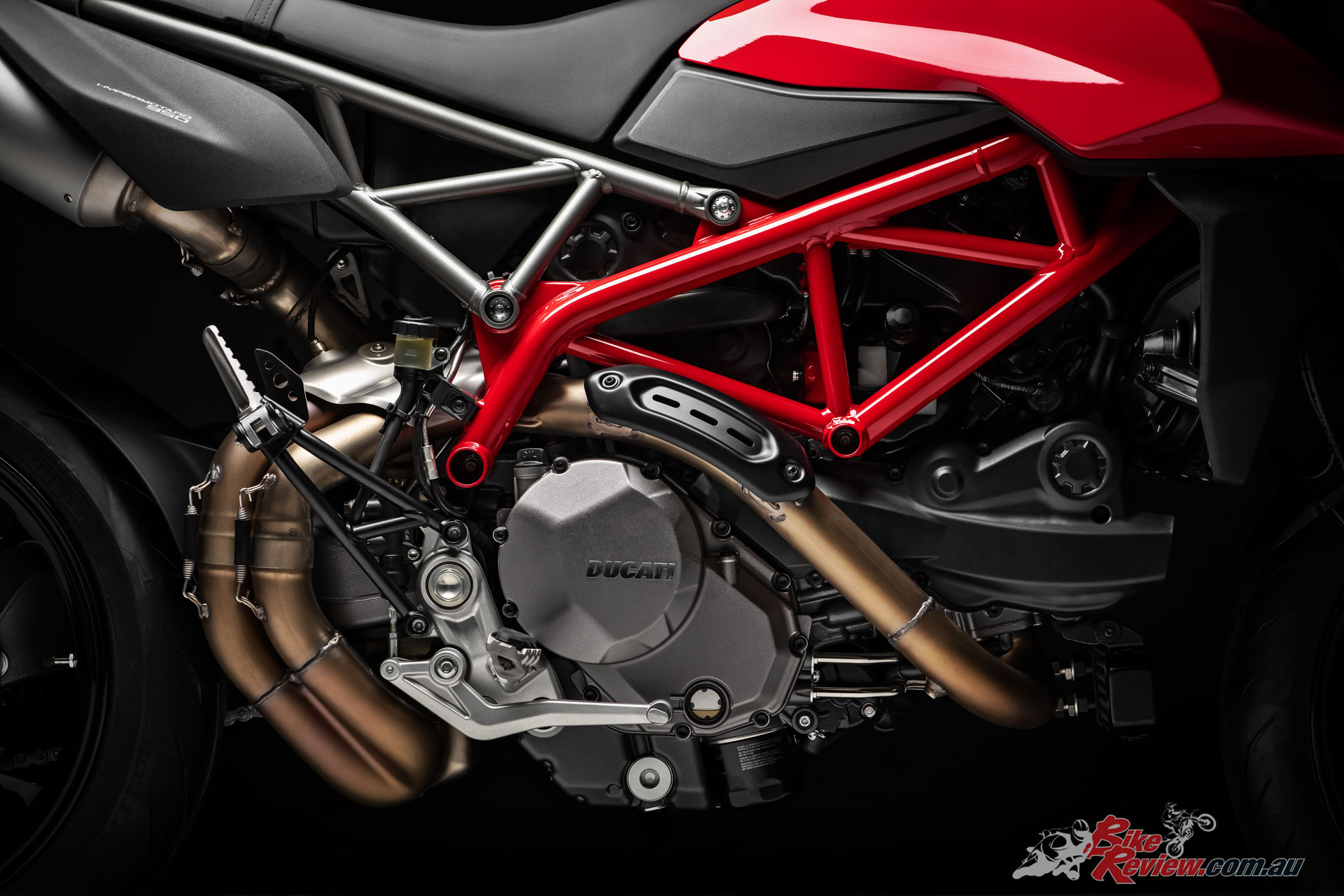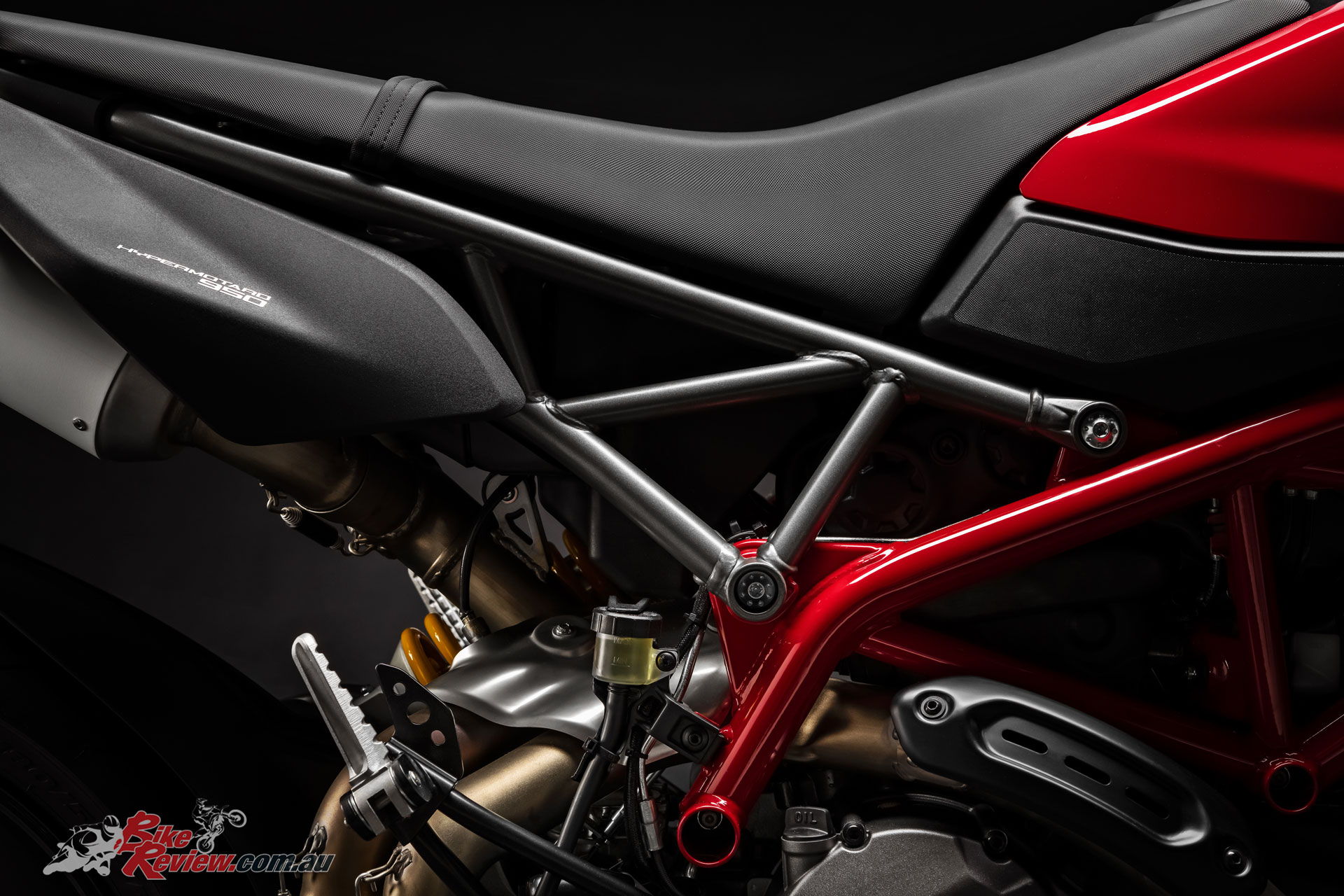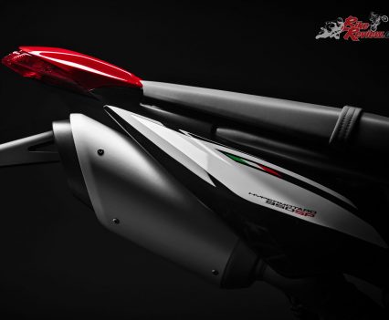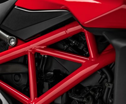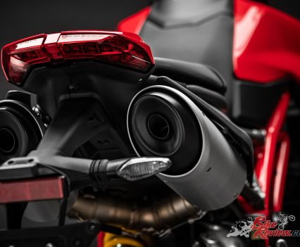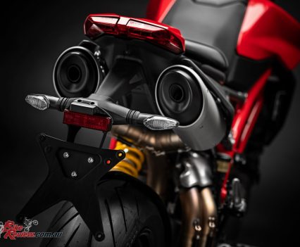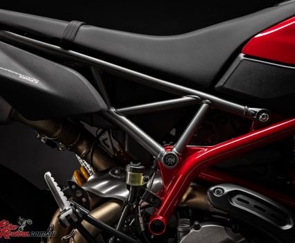 The design of the Hypermotard 950 pivots around the twin under-seat tailpipes and the minimalist superstructure, which ensures the mechanics – including the light rear Trellis sub-frame – are kept in clear view. As well as being more visually compact, the Hypermotard 950 is also 4kg lighter (the engine alone accounts for a 1.5 kg saving) compared to the previous model.