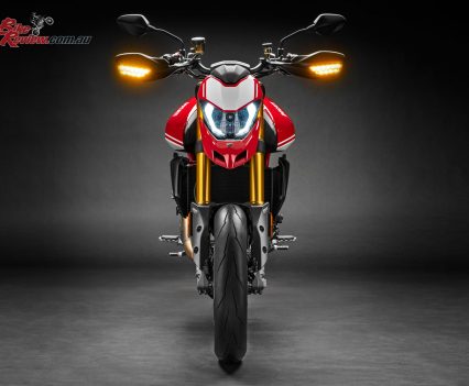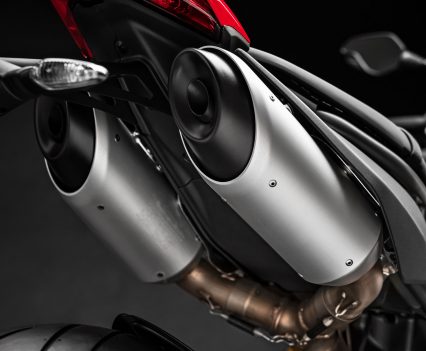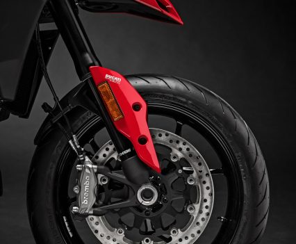 The frontal view – characterised by the ‘beak’, surmounted by compact headlight with Daytime Running Light (DRL) to give the Hypermotard 950 excellent visibility in daylight – underscores a clear ‘family feeling’ with the models that preceded it.