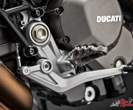 Performance is kept under control by the modern electronics which uses a Bosch six-axis Inertial Measurement Unit (6D IMU) to detect the bike’s roll, yaw and pitch angles instantly. The 950 electronics package includes Bosch Cornering ABS with the Slide by Brake function (with setting 1), Ducati Traction Control EVO (DTC EVO), Ducati Wheelie Control (DWC) EVO and Ducati Quick Shift (DQS) Up and Down EVO (as standard on the 950 SP version and available as an accessory on the 950).