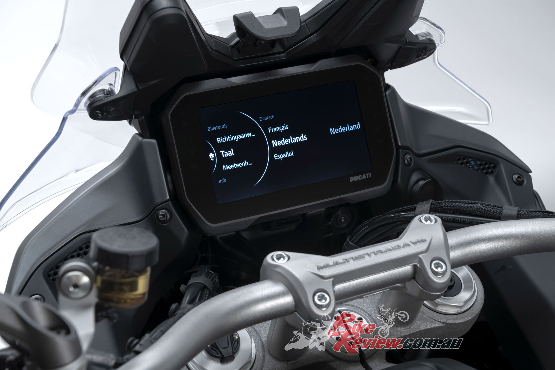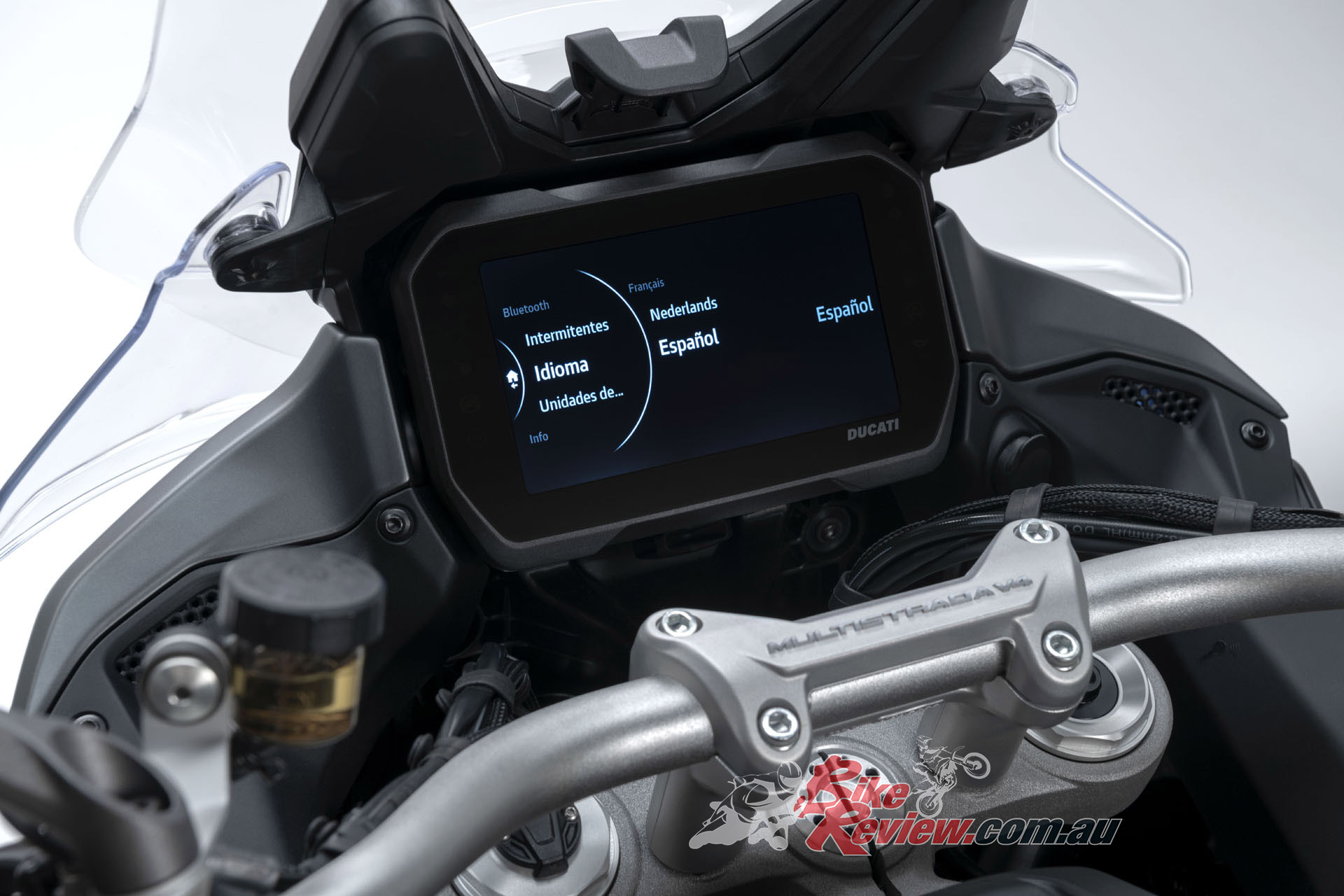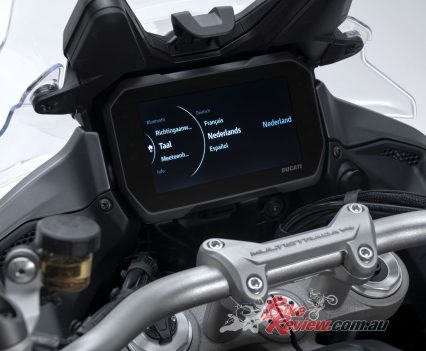 The Multistrada V4 is “Sport” because it is light and compact, has 170 hp, electronic MotoGP aids and a chassis with agile dimensions for an exciting and effective ride on mixed terrain, say Ducati. It is “Touring” thanks to the main maintenance intervals set every 60,000km, to the obsessive attention paid in the development phase to ride comfort, to the Radar systems (the first motorcycle in the world to have both front and rear), to the map navigator that can be viewed on the dashboard and to the cornering lights.