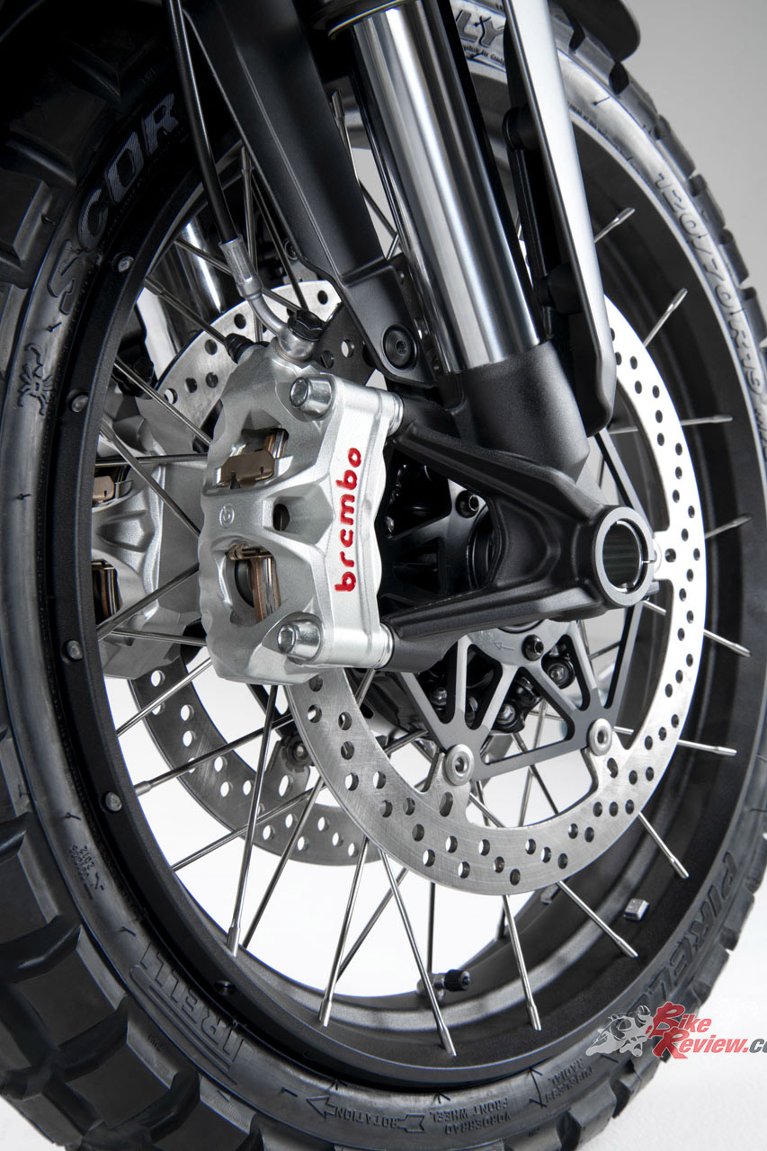 This fact is immediately noticeable by the predominant volumes on the front with muscular but sexy lines to integrate the 22-litre tank, combined with the slim rear that allows an optimal riding position even when standing in off-road sections. The study of the aerodynamic flows was aimed at guaranteeing the maximum possible comfort for the rider.