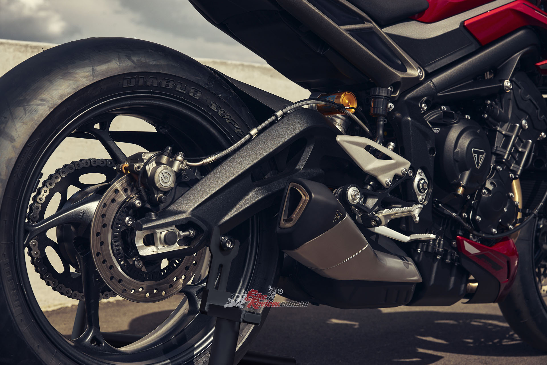 • New freer-flowing exhaust and silencer delivers the trademark triple soundtrack