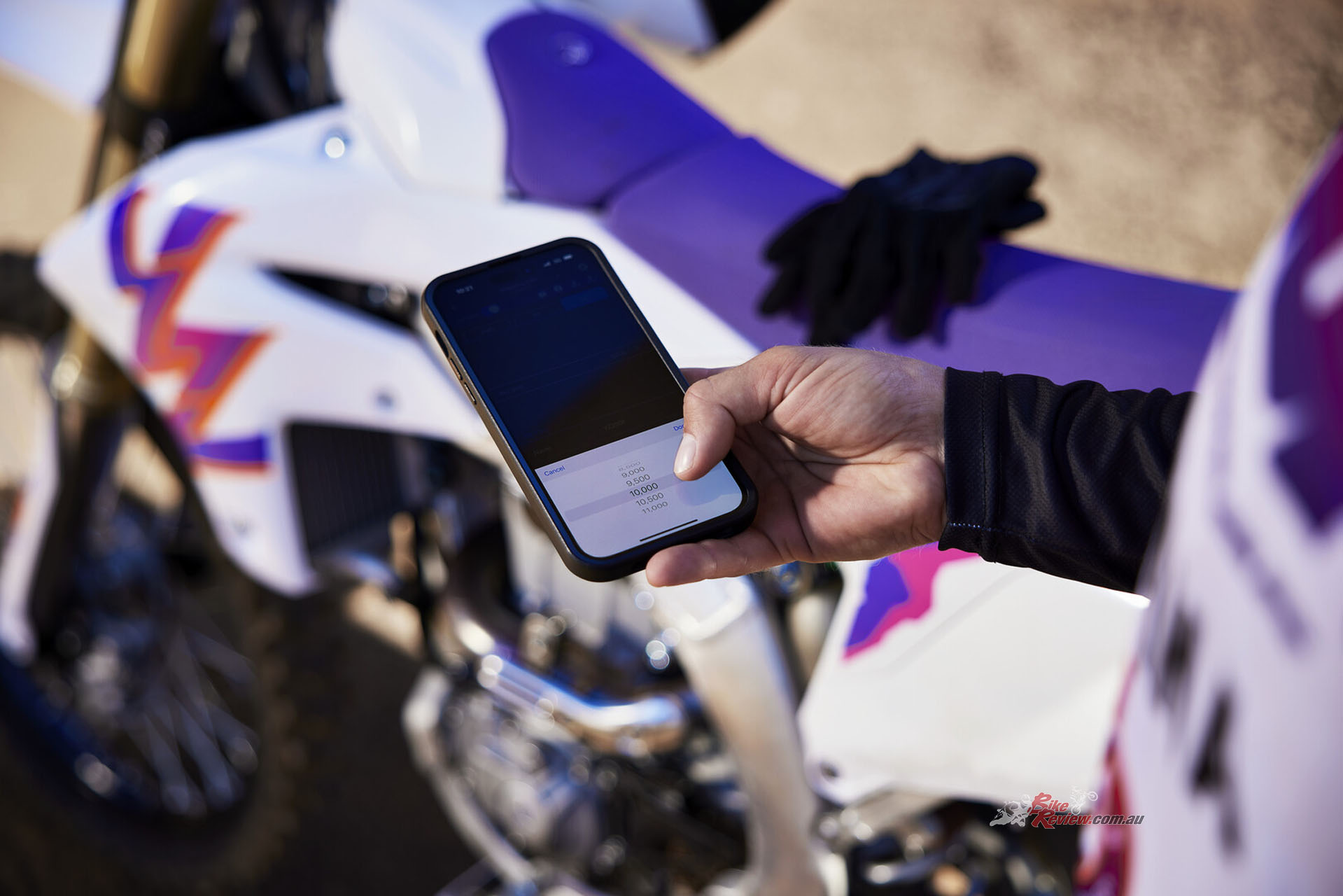 Running the same revised smartphone Power Tuner app as the MY24 YZ250F, the YZ450F also benefits from the Traction Control System that communicates wheel slip to the ECU, tuning the engine to maintain ideal rear wheel traction. Three levels can be selected: HIGH, LOW or OFF. The Launch Control System continues to implement traction control and features an rpm limiting setting, which can be adjusted in 500rpm increments between 6000rpm and 11,00-0rpm. Both systems are controlled through the Yamaha Power Tuner App.