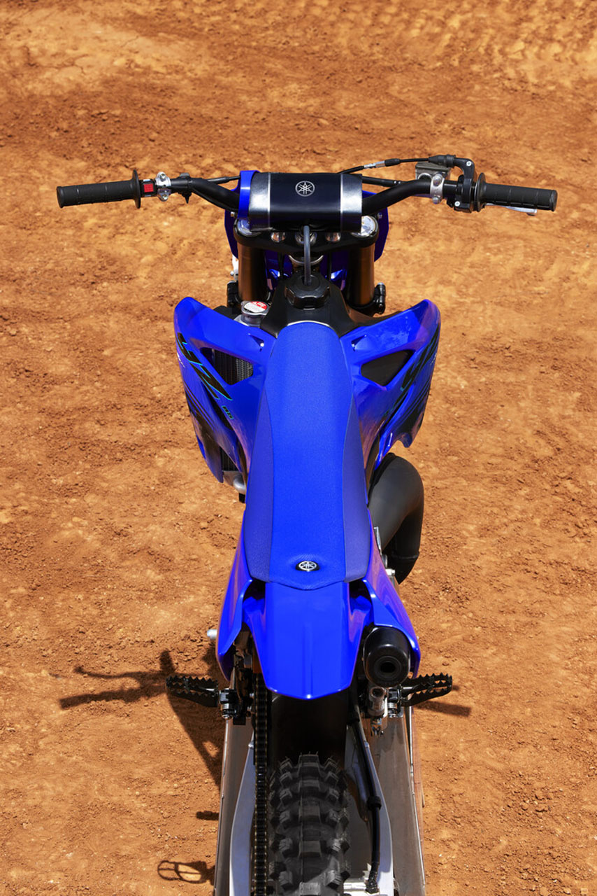A completely redesigned aluminium bilateral beam frame based on the flagship YZ450F provides just the right amount of strength and flex for the perfect balance of straight-line stability and cornering performance.