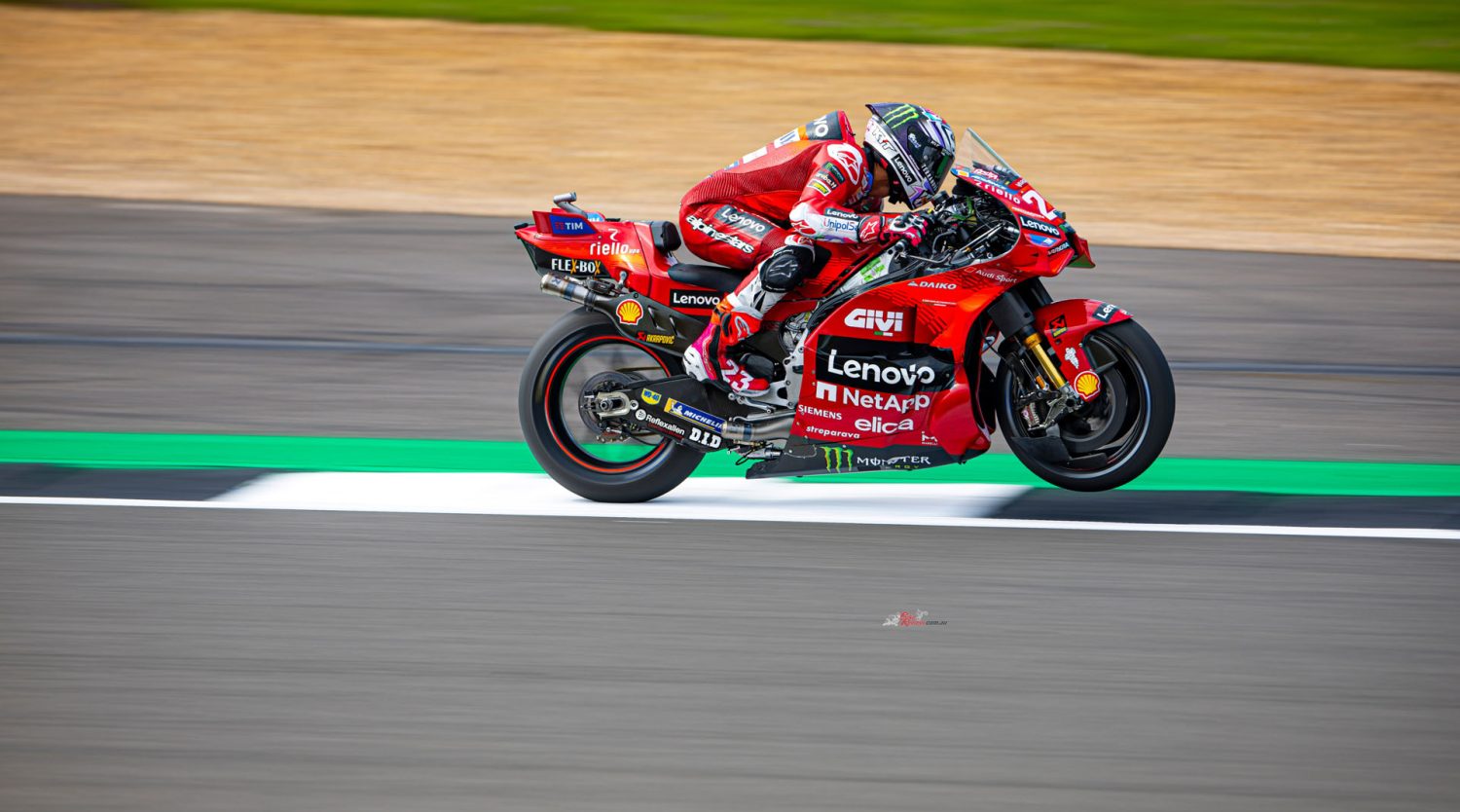 The 75th Anniversary livery was spectacular and Ducati Lenovo Team Italian hero Enea Bastianini became the 10th different winner in the MotoGP class of 2024 at Silverstone as Jorge Martin beat Francesco Bagnaia to claim the Championship lead. Enjoy our gallery.