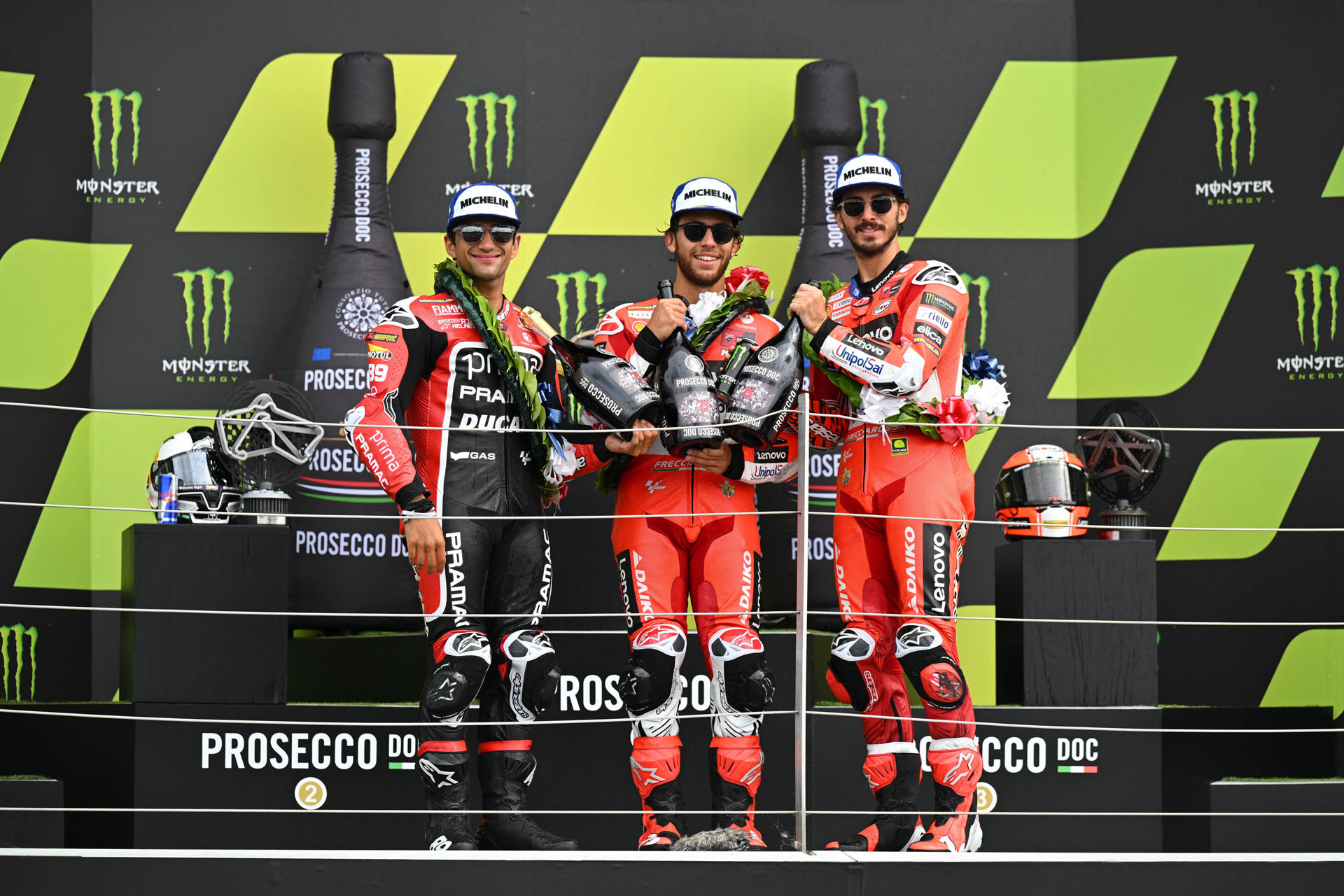 Reigning Champion Francesco Bagnaia (Ducati Lenovo Team) secured the final spot on the podium as he bounced back from a crash on Saturday, but the 16-point haul on Sunday puts him back behind Martin by three. It was his 43rd MotoGP™ podium, all on a Ducati, which makes him the rider with the most podiums taken with Ducati.