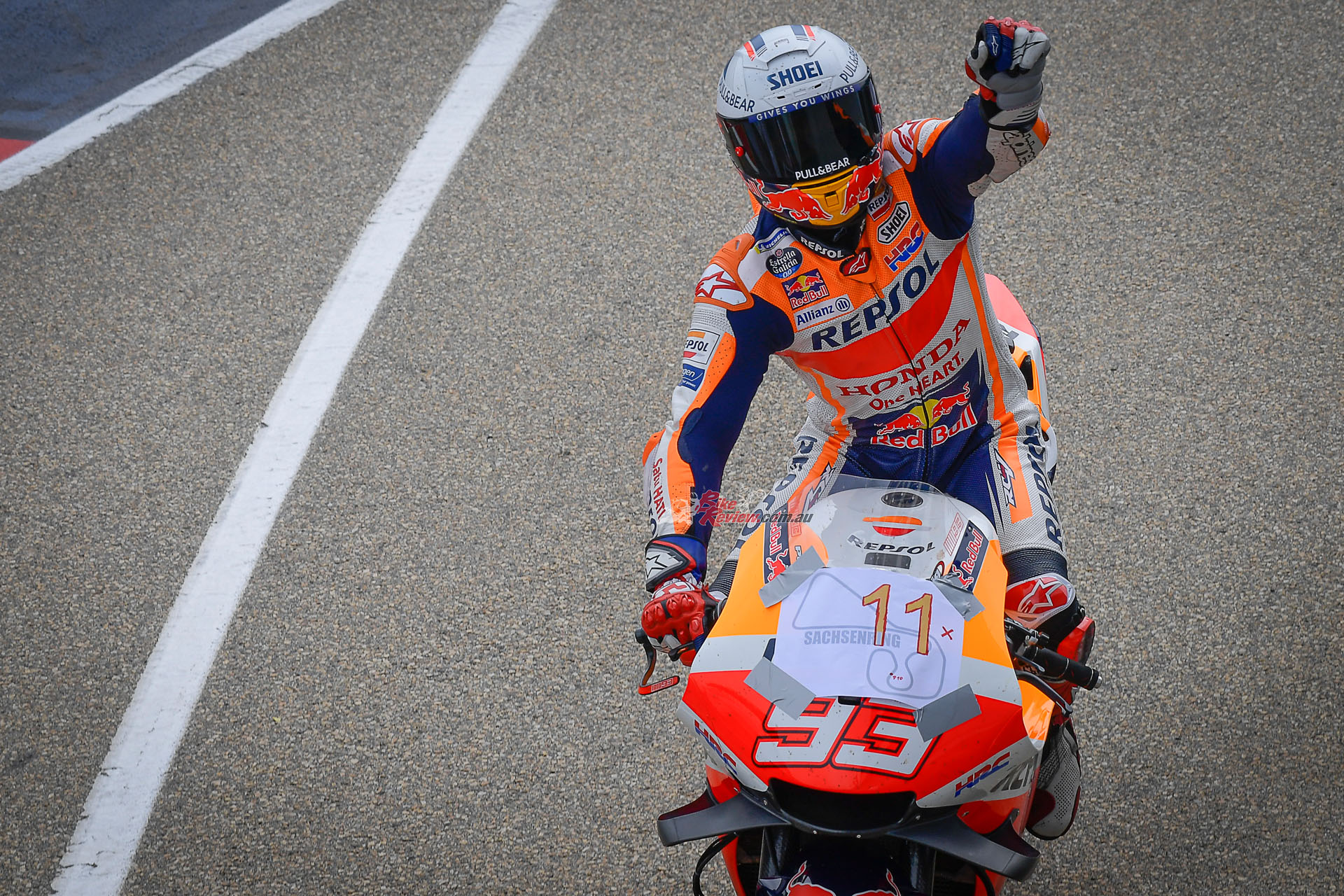 11 races in a row, eight in MotoGP, 30 laps, 25 points and 581 days: an emotional return to the top step sees the eight-time World Champion, Marc Marquez, remains unbeaten at Sachsenring after a tough started to the year for the Spanish rider.
