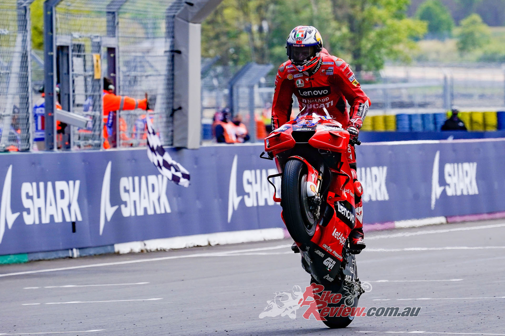 It says Thriller on the back of his helmet and twice on the bounce that’s now been a fitting moniker for Jack Miller. This time round Miller wins at the SHARK Grand Prix de France it was a flag-to-flag spectacular that saw him come out on top, overcoming two Long Lap penalties.