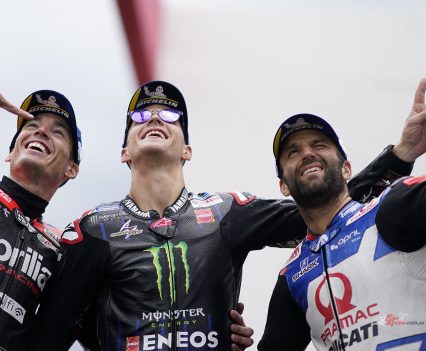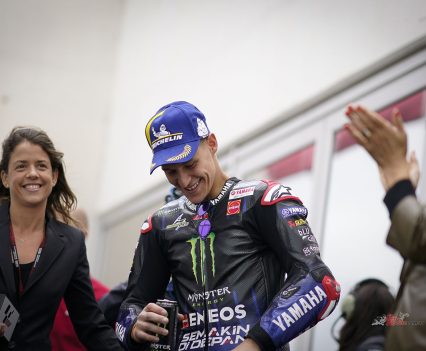 How’s that for a victory? Monster Energy Yamaha MotoGP’s Fabio Quartararo got the hammer down to dominate the Grande Premio Tissot de Portugal and taking his first win of the season, nearly five seconds clear by the flag, comfortably cruising over the line.