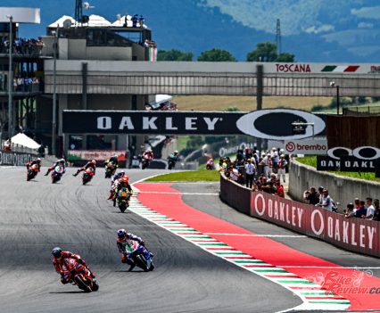 As ever, Marc Marquez was on the absolute limit of his Honda machine. But it wasn’t quite enough at Mugello as the Spaniard ran wide at the final turn and crashed out on the dirty part of the tarmac with 17 laps remaining.